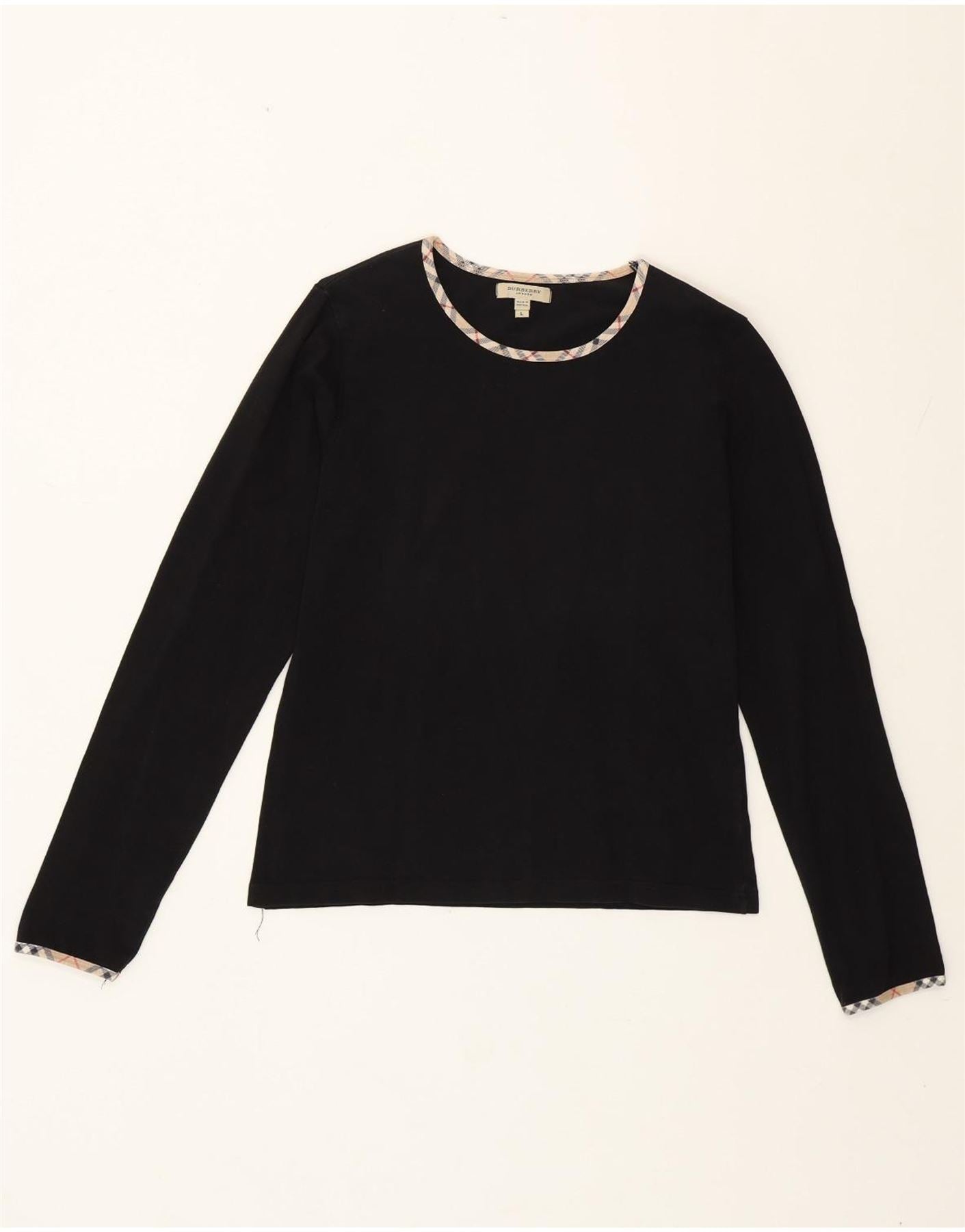 Burberry Dame Top Langærmet UK 14 Stor Sort Bomuld
