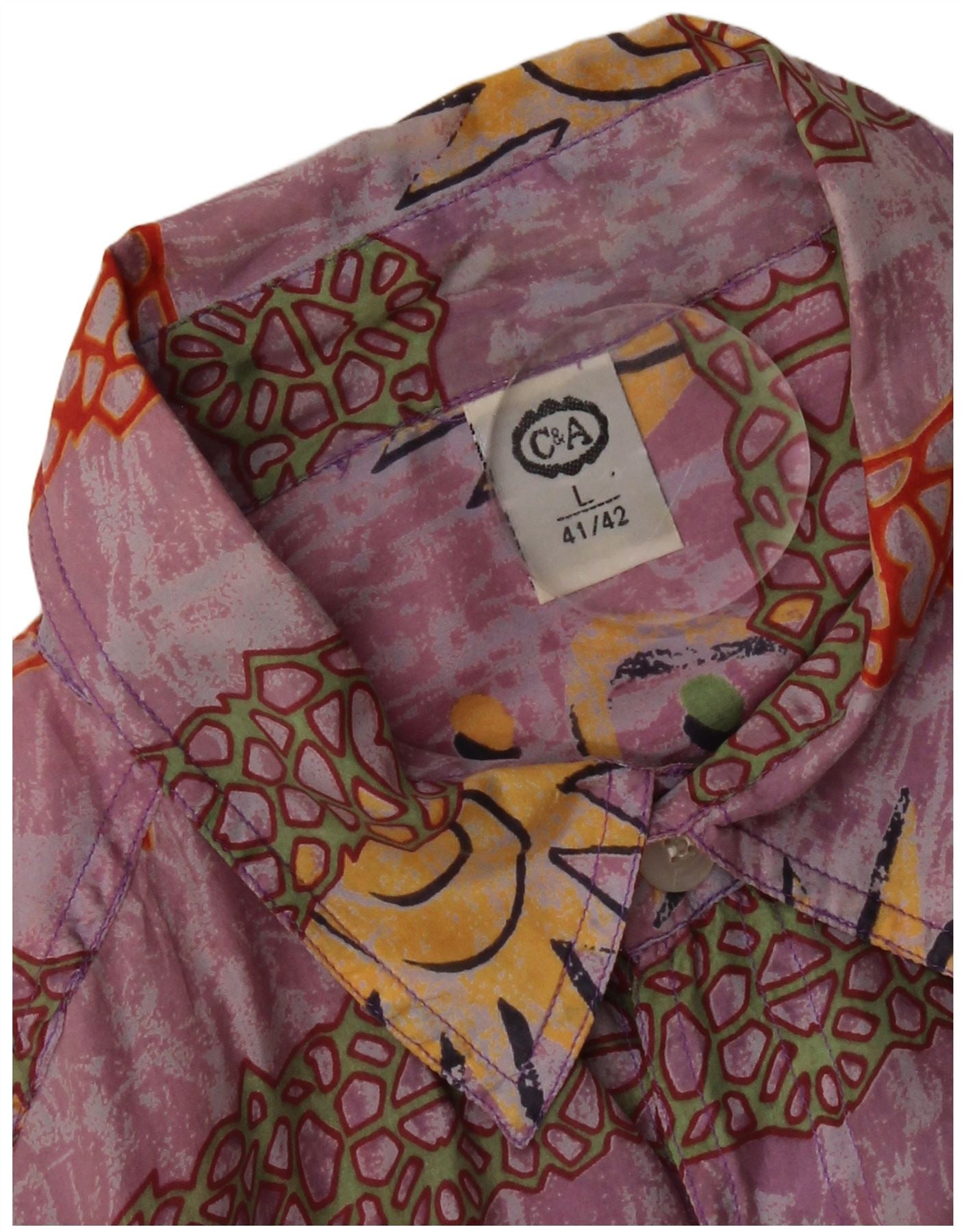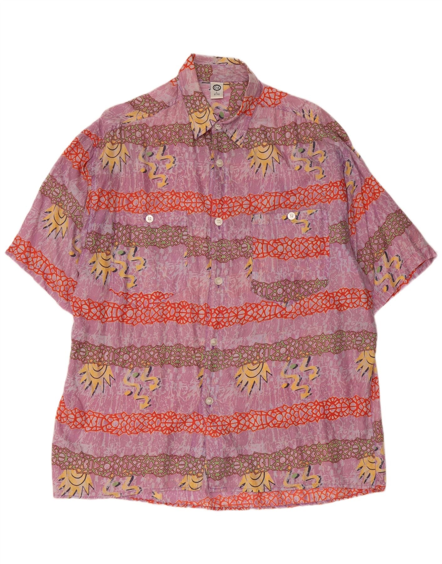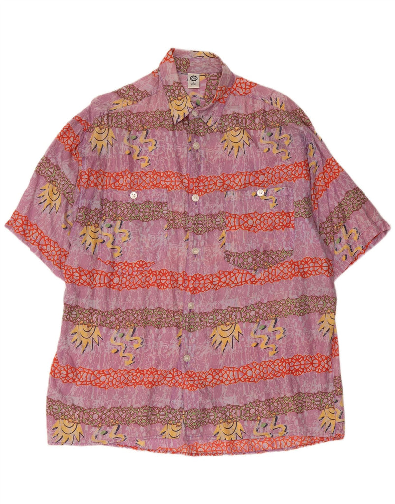 C&A Mens Abstract Pattern Short Sleeve Shirt Size 41/42 Large Purple Silk