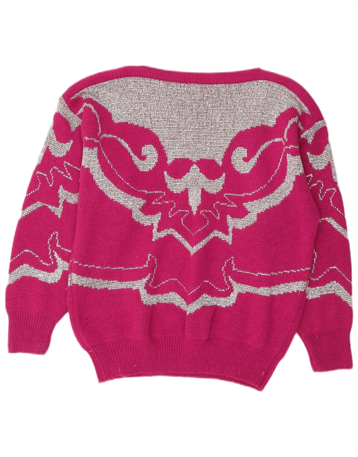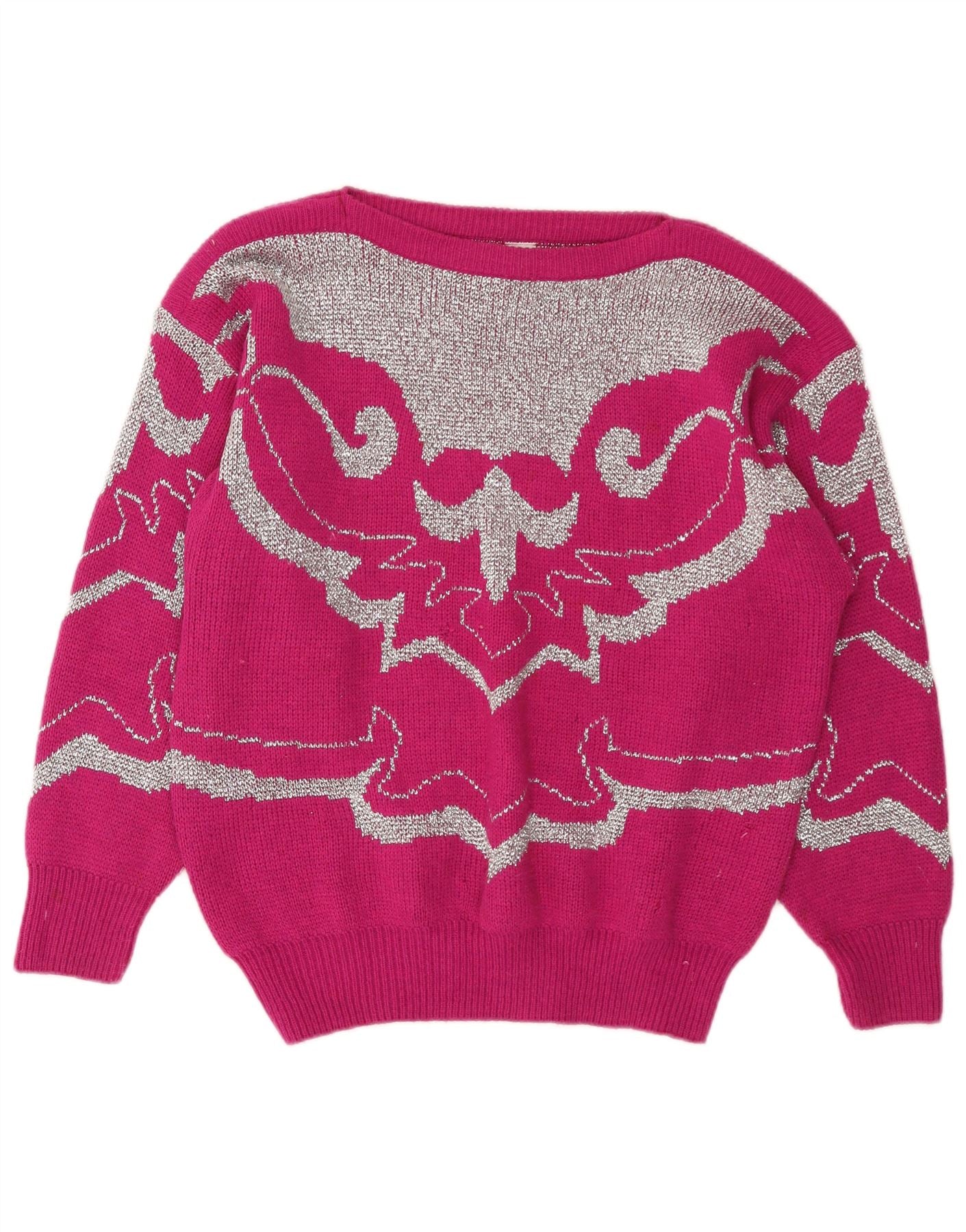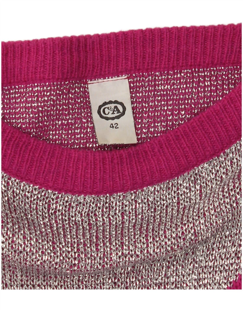C&A Womens Boat Neck Jumper Sweater EU 42 Large Pink Paisley Acrylic
