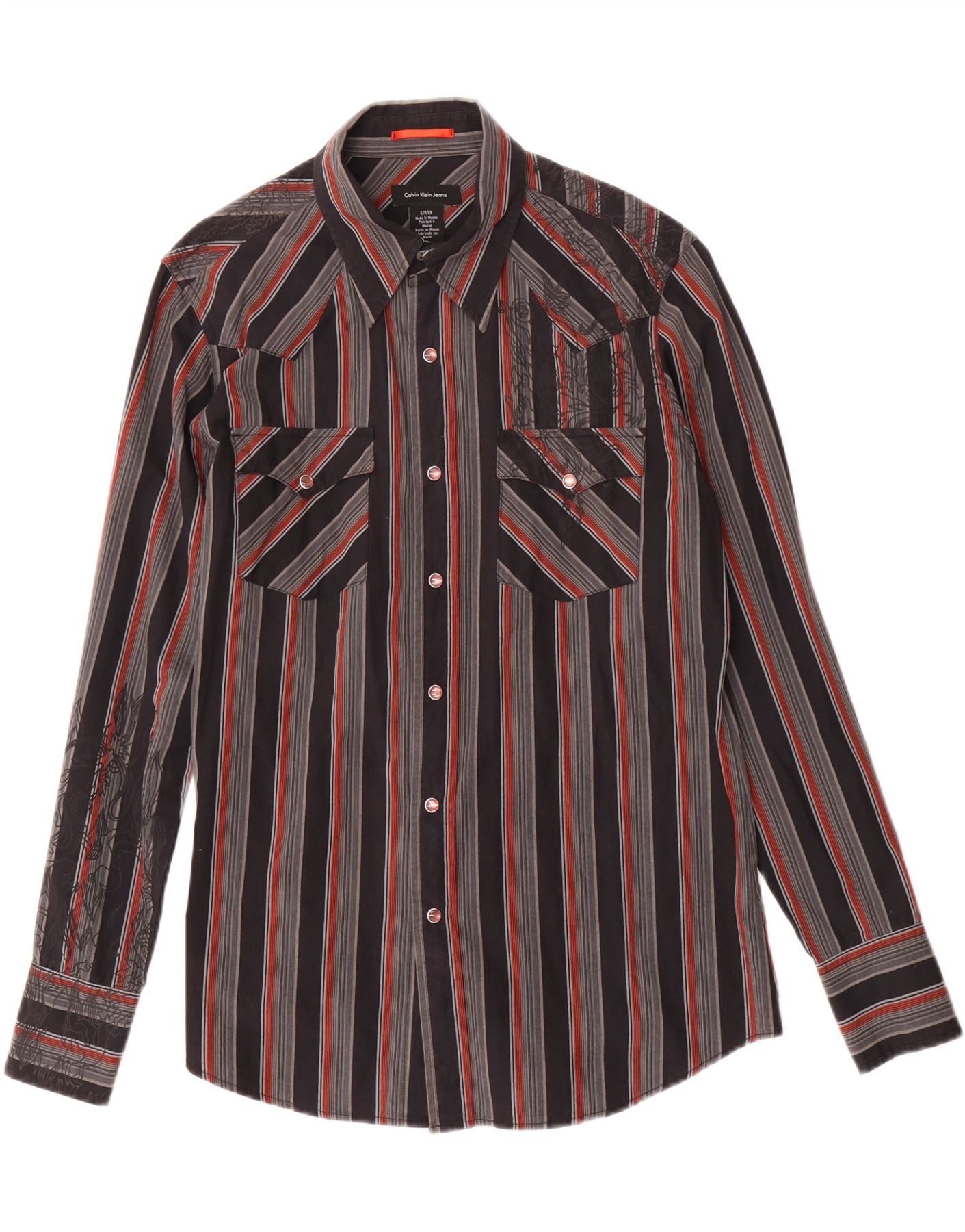 CALVIN KLEIN JEANS Herre grafisk skjorte Lille sort stribet bomuld