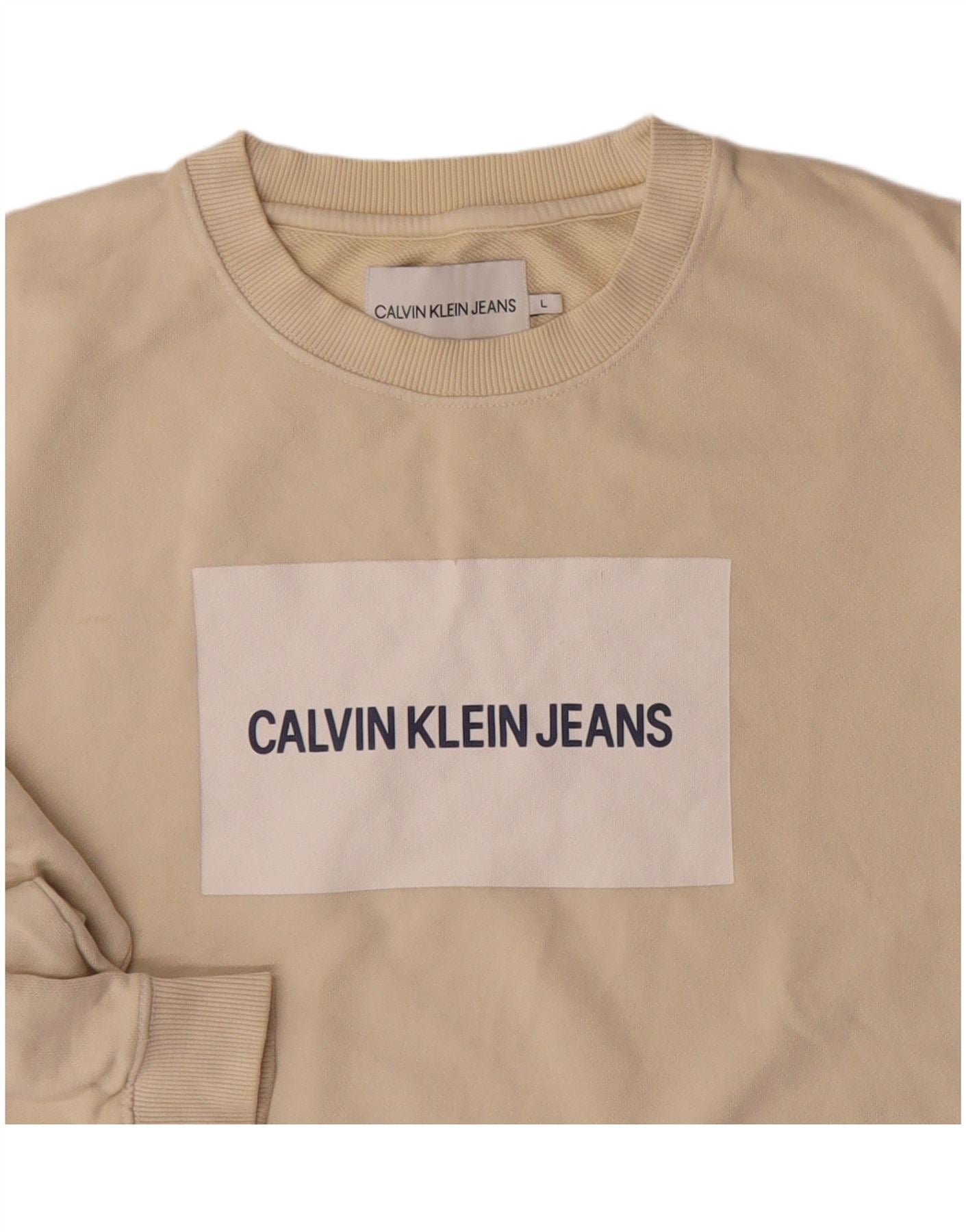 Calvin Klein Jeans Herre Grafisk Sweatshirt Jumper Stor Beige Bomuld