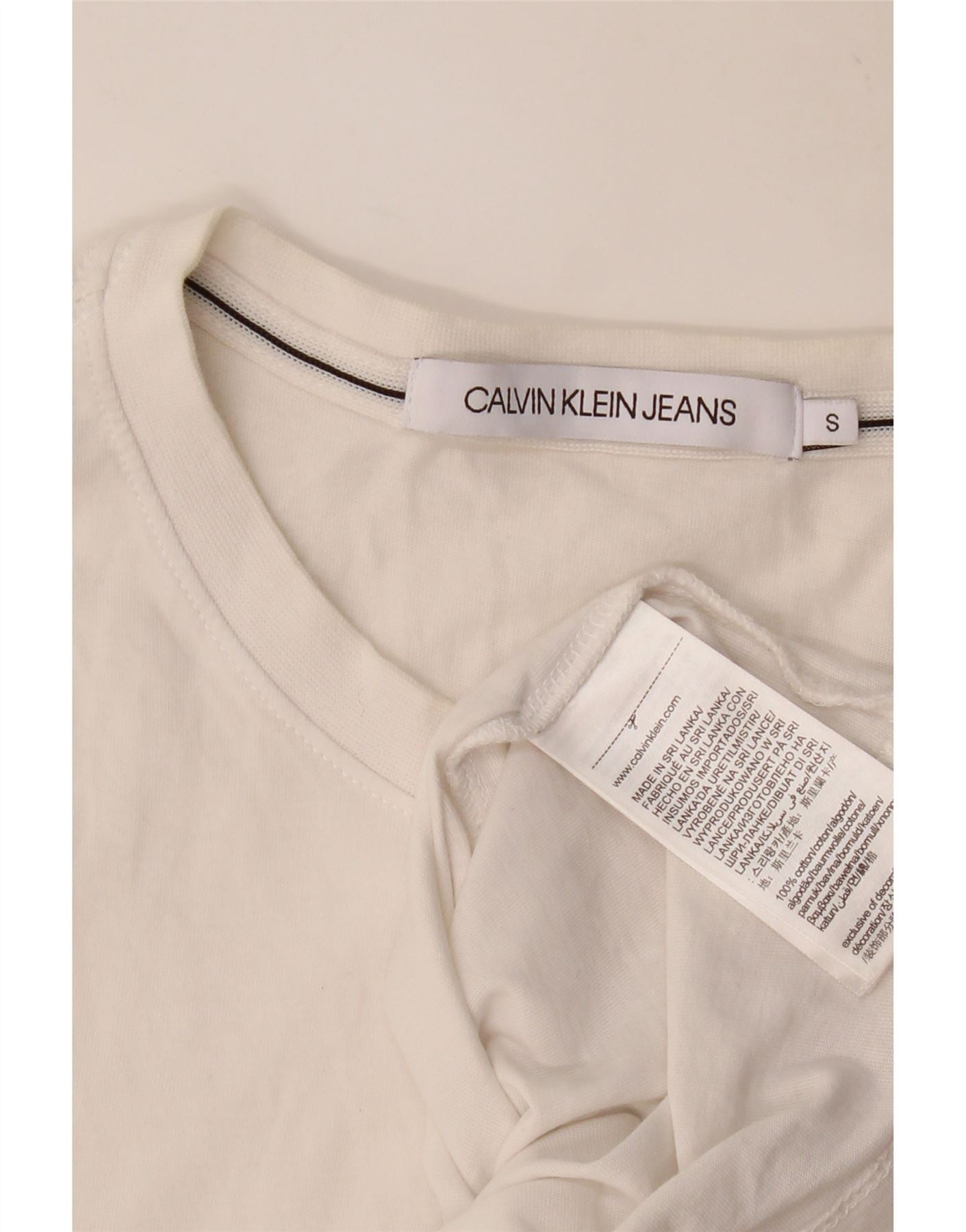 CALVIN KLEIN JEANS Mens Graphic T-Shirt Top Small White Cotton