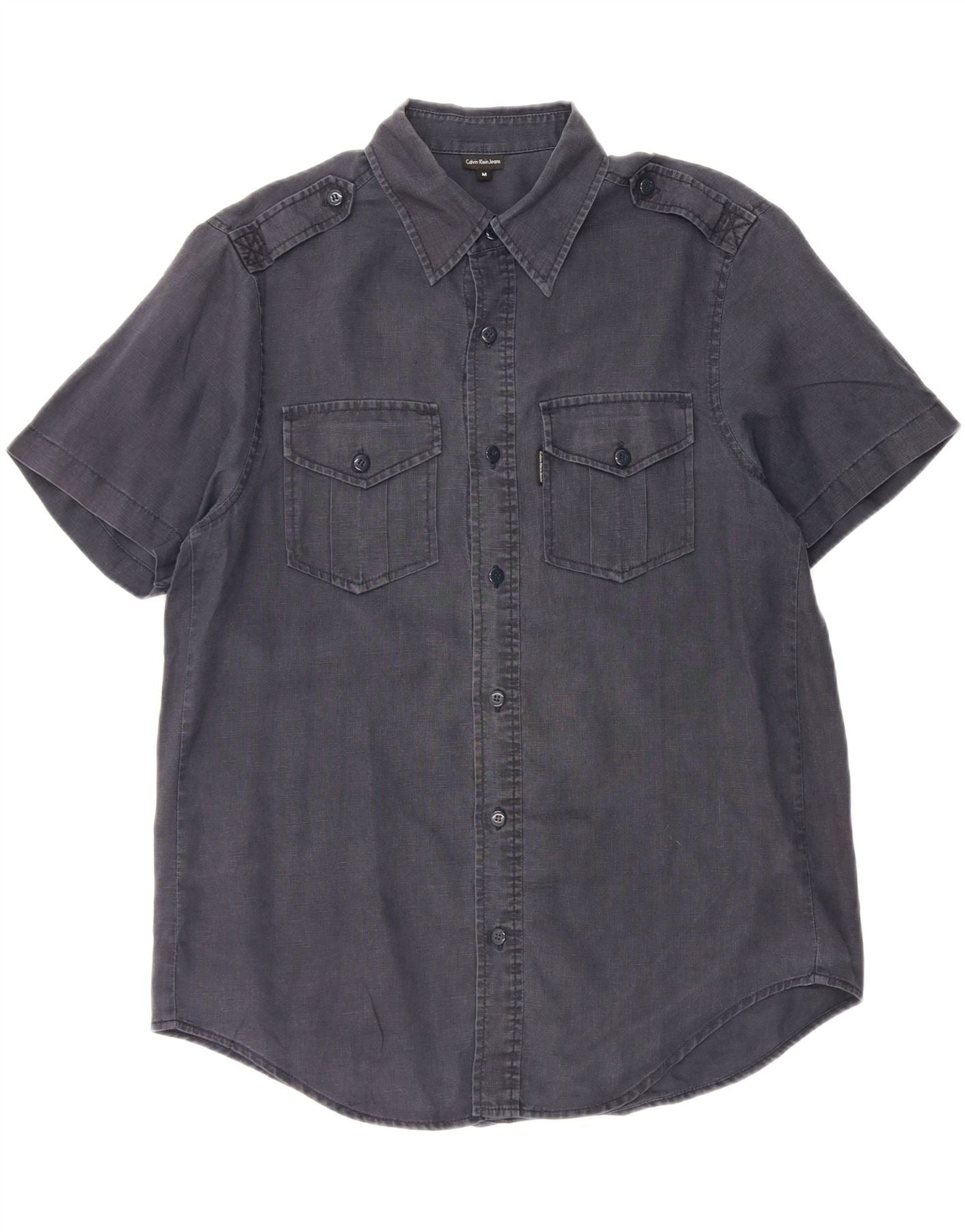 CALVIN KLEIN JEANS Mens Military Short Sleeve Shirt Medium Navy Blue