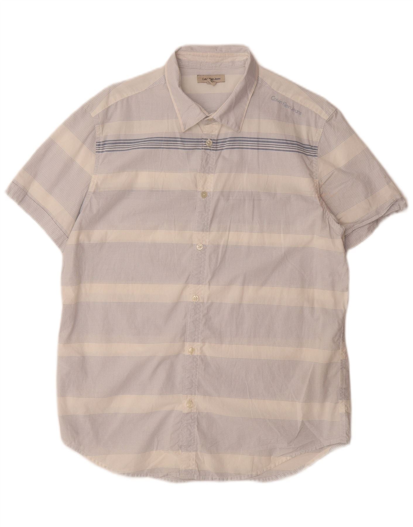 CALVIN KLEIN JEANS Kortærmet skjorte til mænd mellemblå stribet bomuld