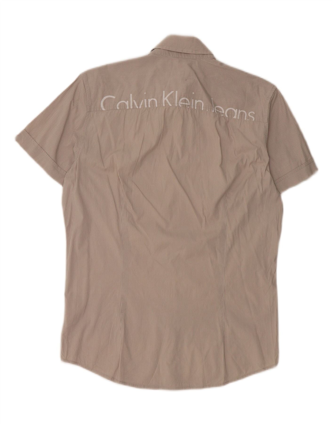 CALVIN KLEIN JEANS Mens Short Sleeve Shirt Medium Grey Pinstripe Cotton
