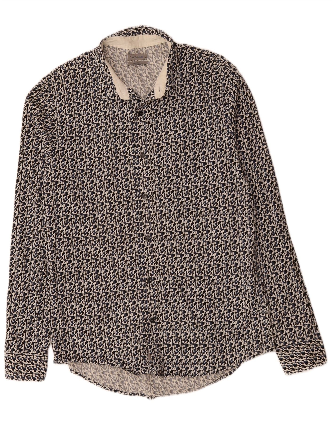 CALVIN KLEIN JEANS Herre Slim Fit skjorte Medium Sort Geometrisk Bomuld