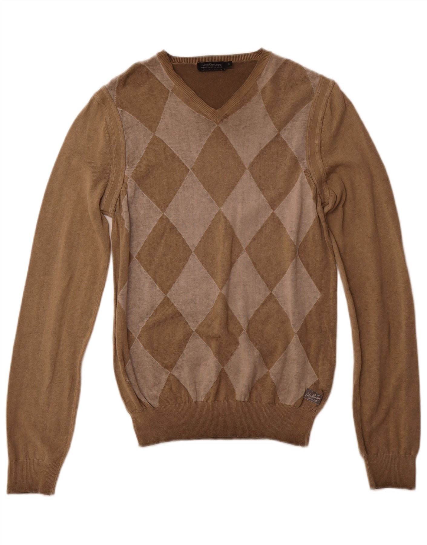CALVIN KLEIN JEANS Herre V-hals sweater Small Brown Argyle/Diamond