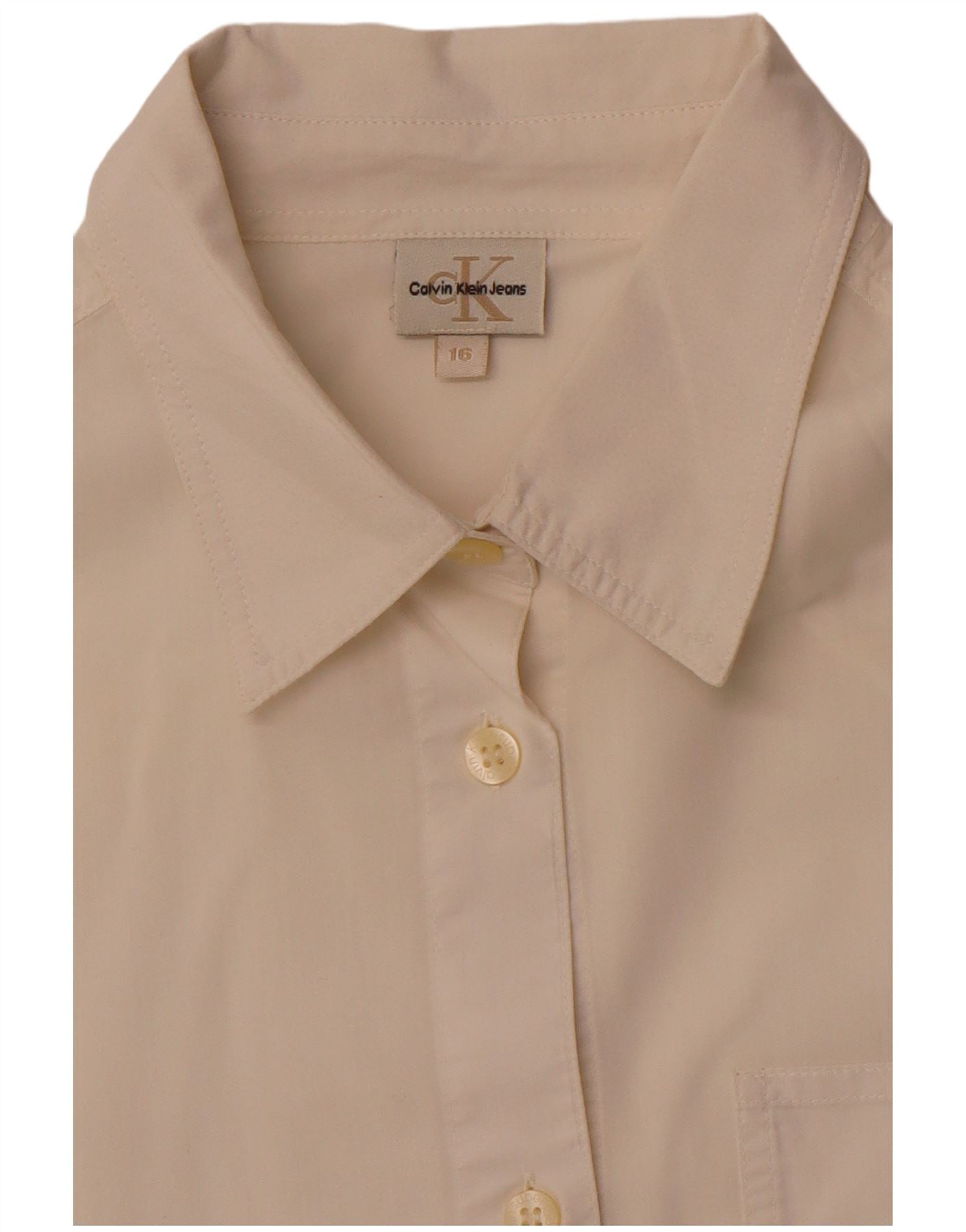 CALVIN KLEIN JEANS skjorte med 3/4 ærmer til kvinder UK 16 Large Off White