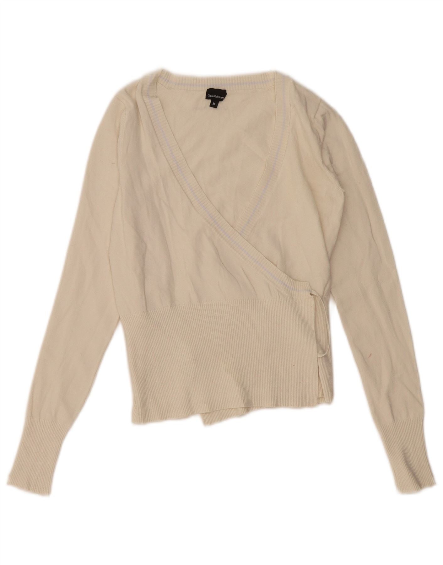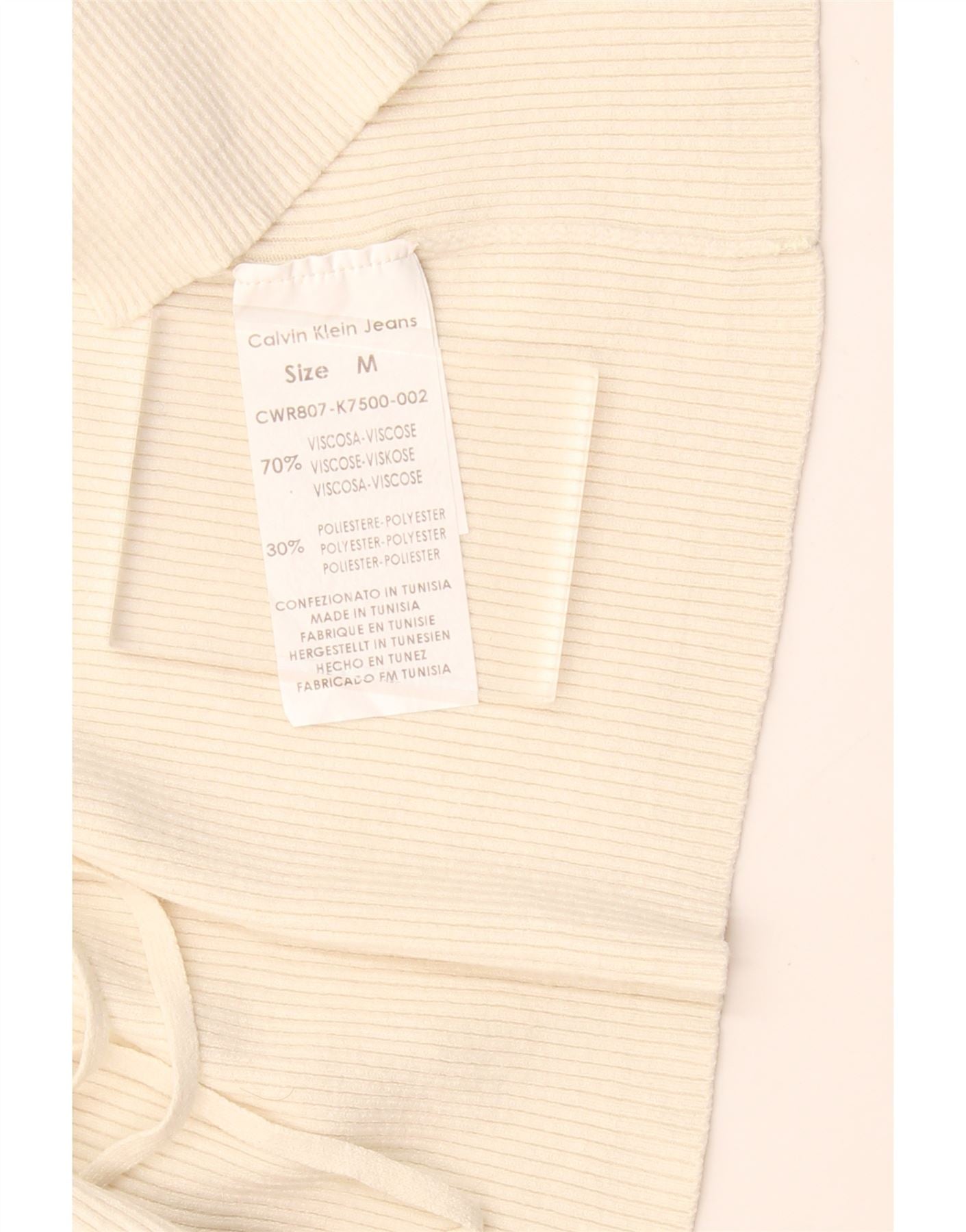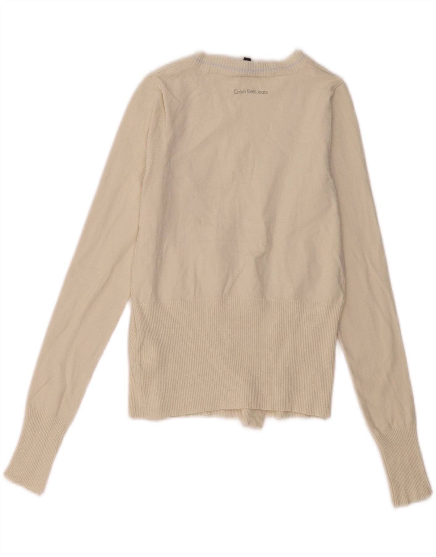 CALVIN KLEIN JEANS Dame Crop cardigan sweater UK 12 Medium White Viscose