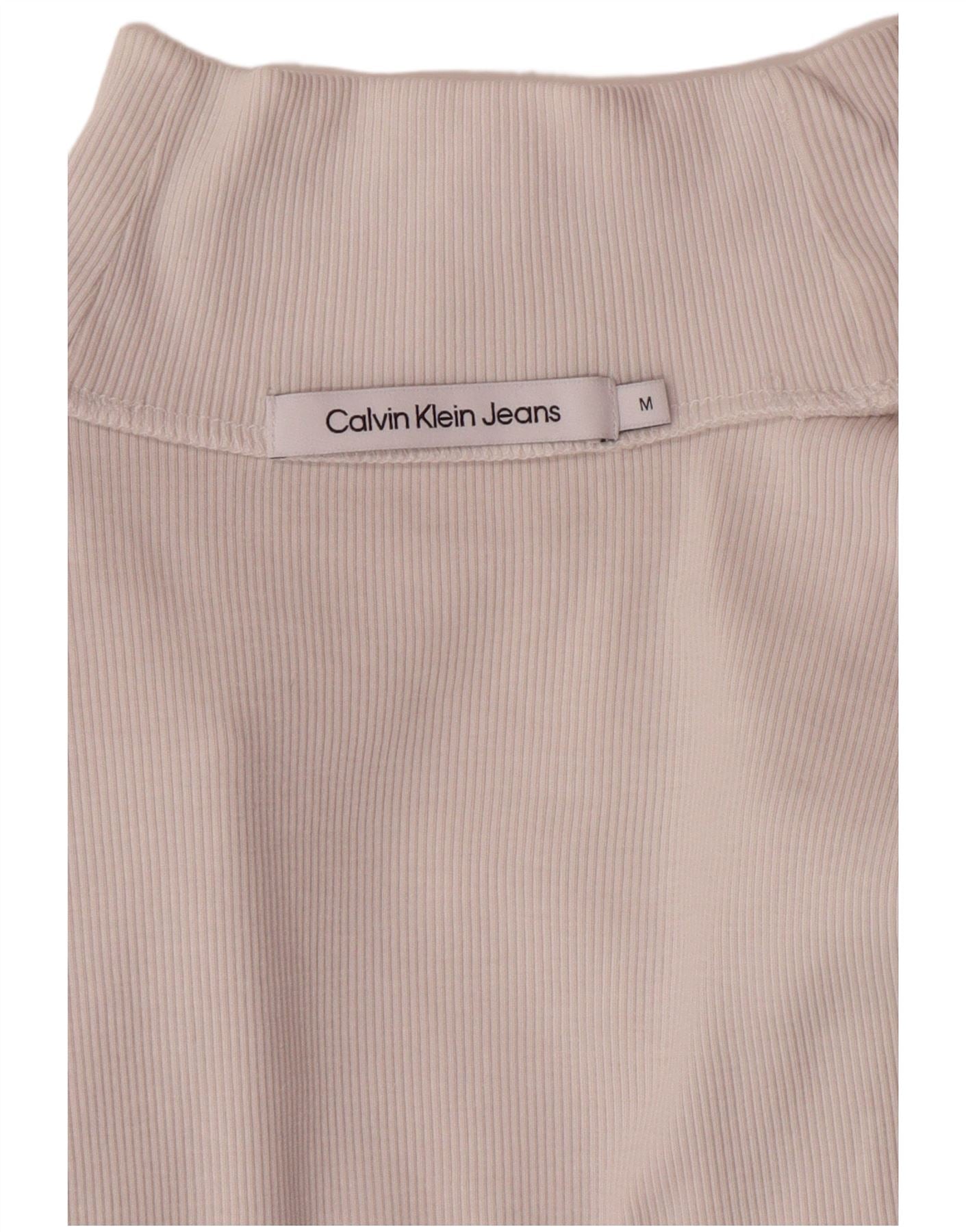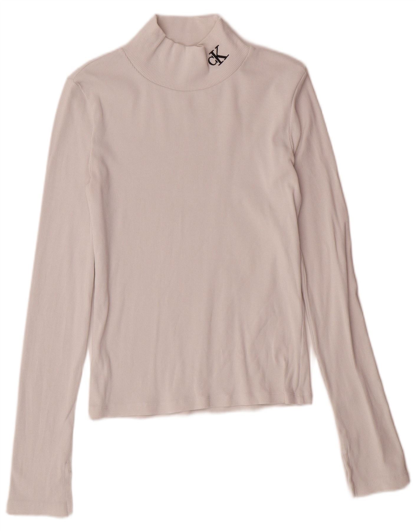 CALVIN KLEIN JEANS Dame Crop Top Langærmet UK 12 Medium White