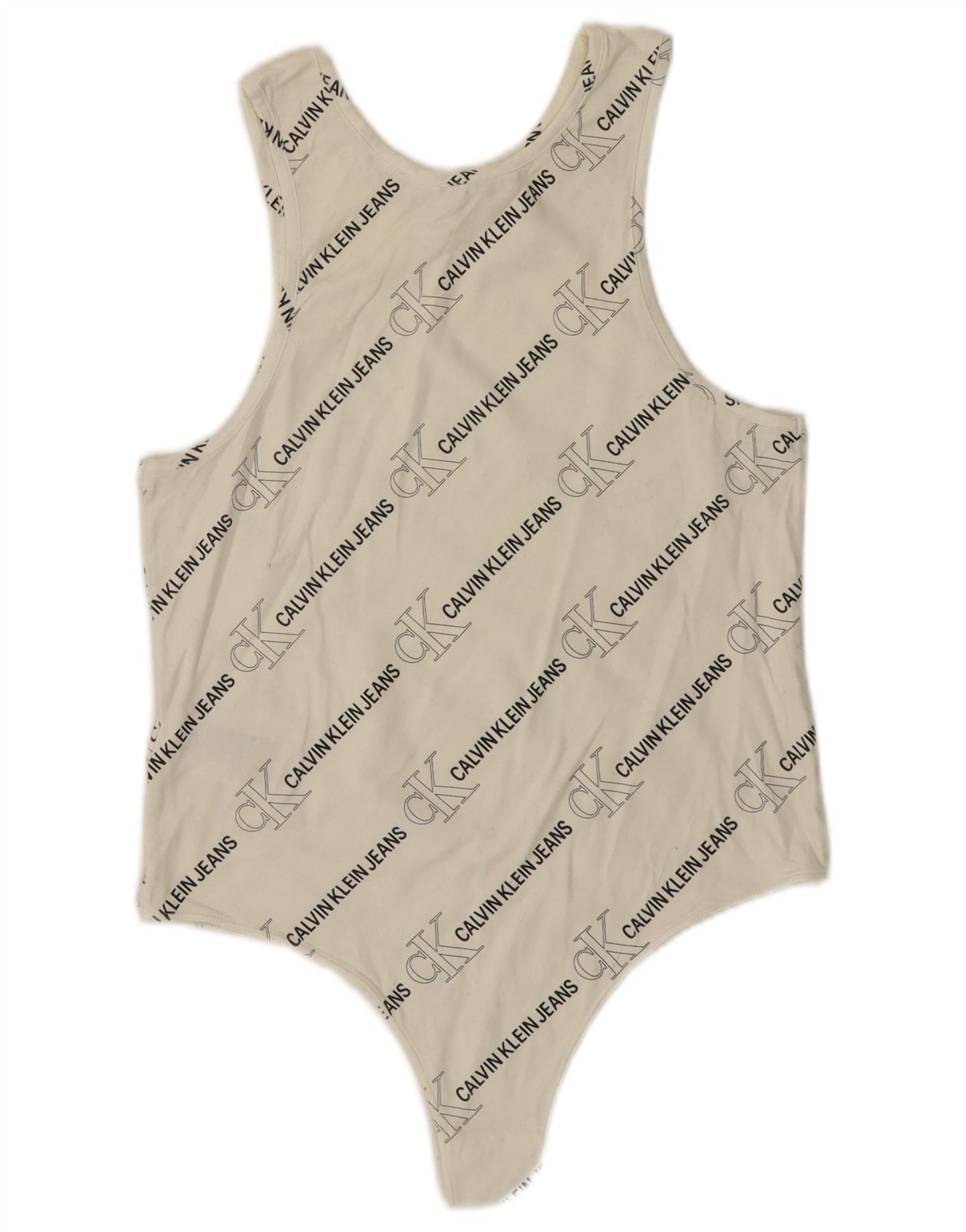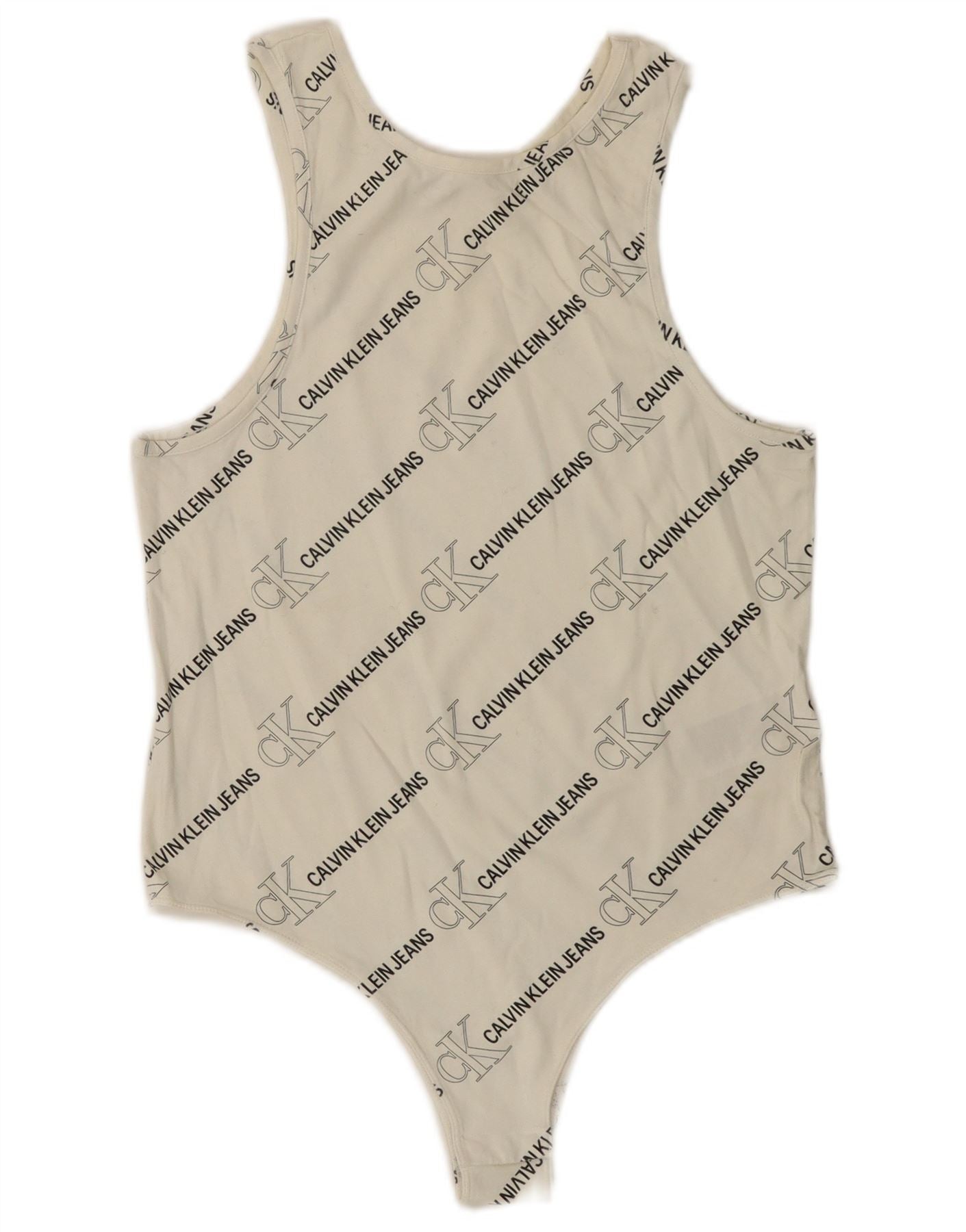 CALVIN KLEIN JEANS Grafisk ærmeløs bodysuit til kvinder UK 14 Large White