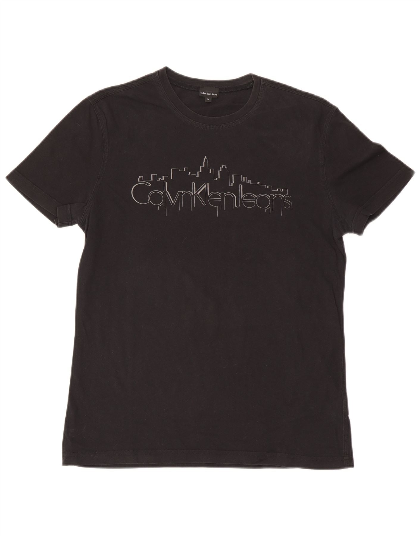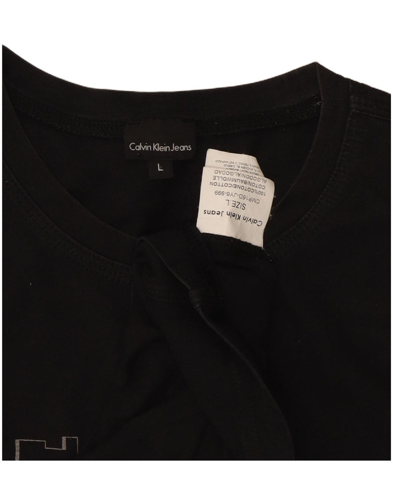 CALVIN KLEIN JEANS Womens Graphic T-Shirt Top UK 14 Large Black Cotton