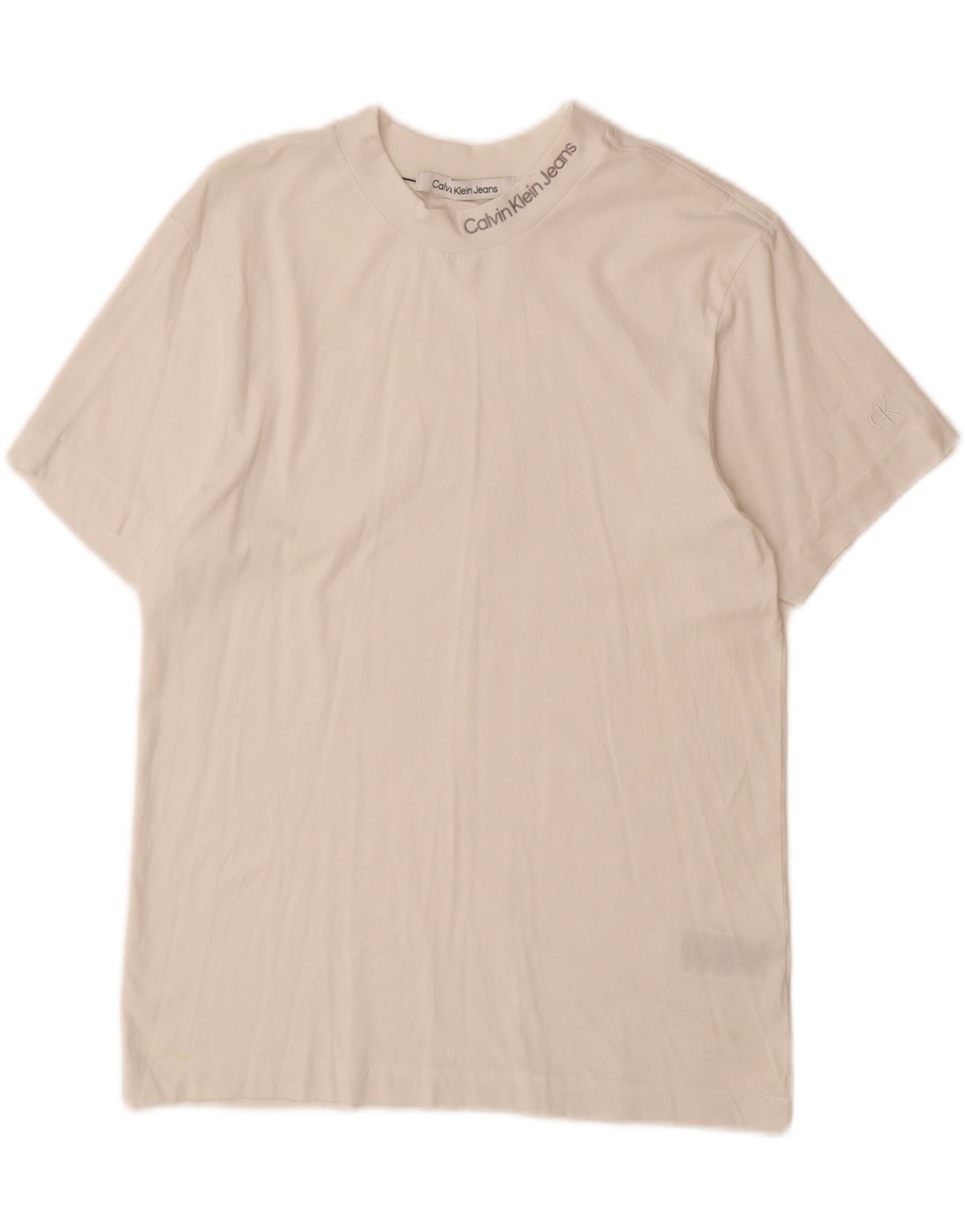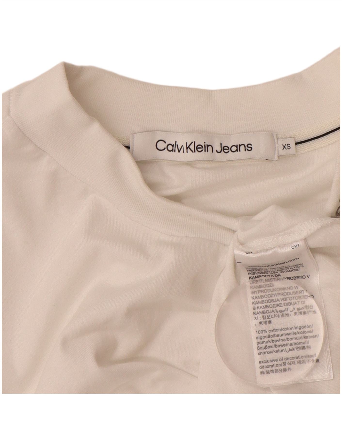 CALVIN KLEIN JEANS Grafisk T-shirt top til kvinder UK 6 XS Hvid bomuld