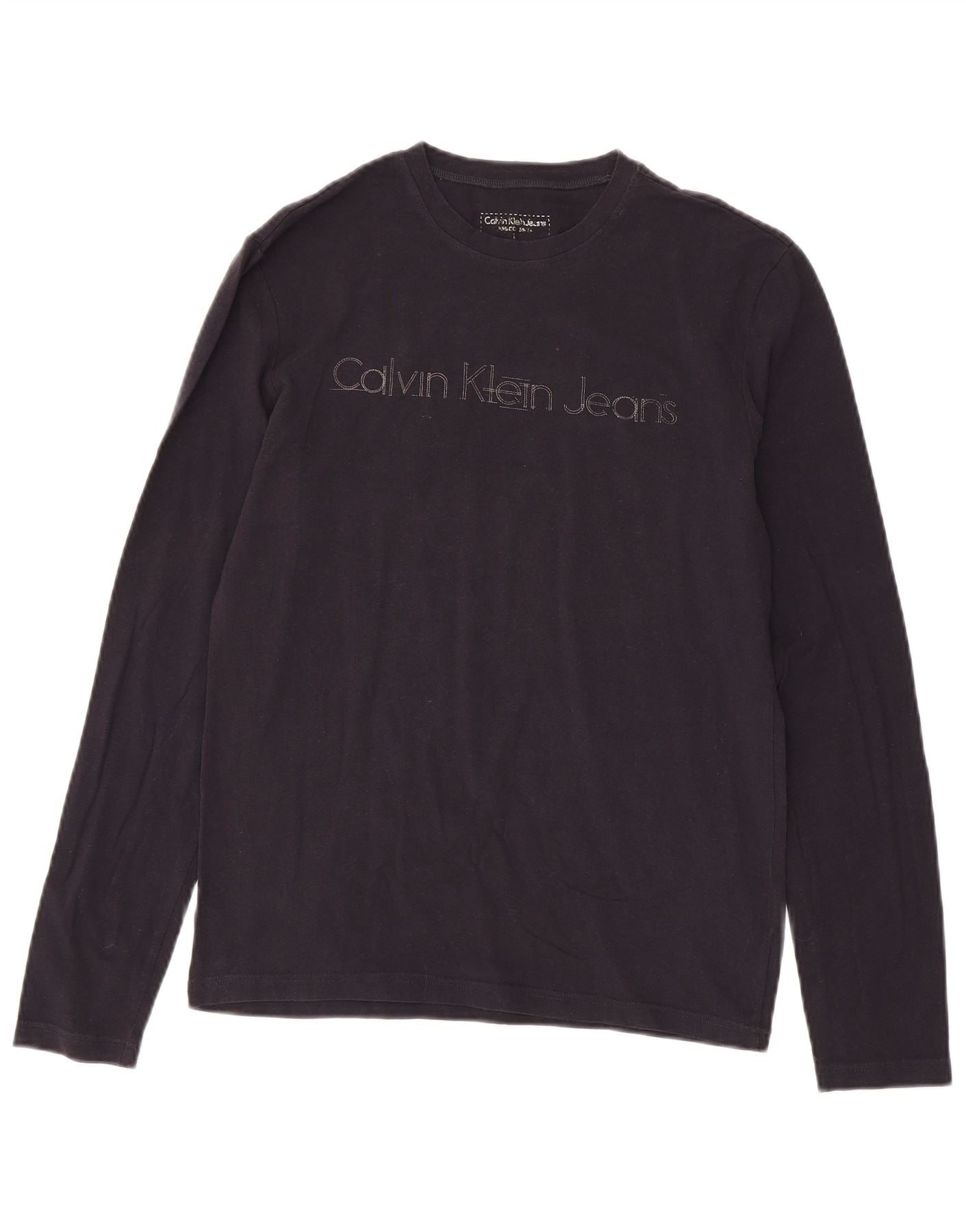CALVIN KLEIN JEANS Dame Grafisk Top Langærmet UK 14 Large Navy Blue