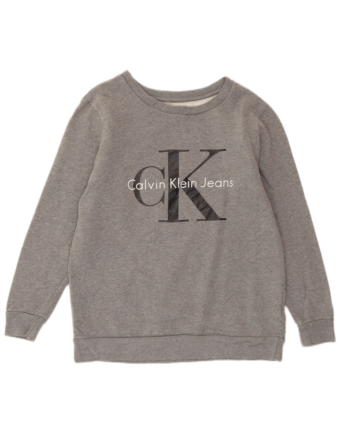 CALVIN KLEIN JEANS Dame Oversized Sweatshirt Jumper UK 6 XS Grå Flecked