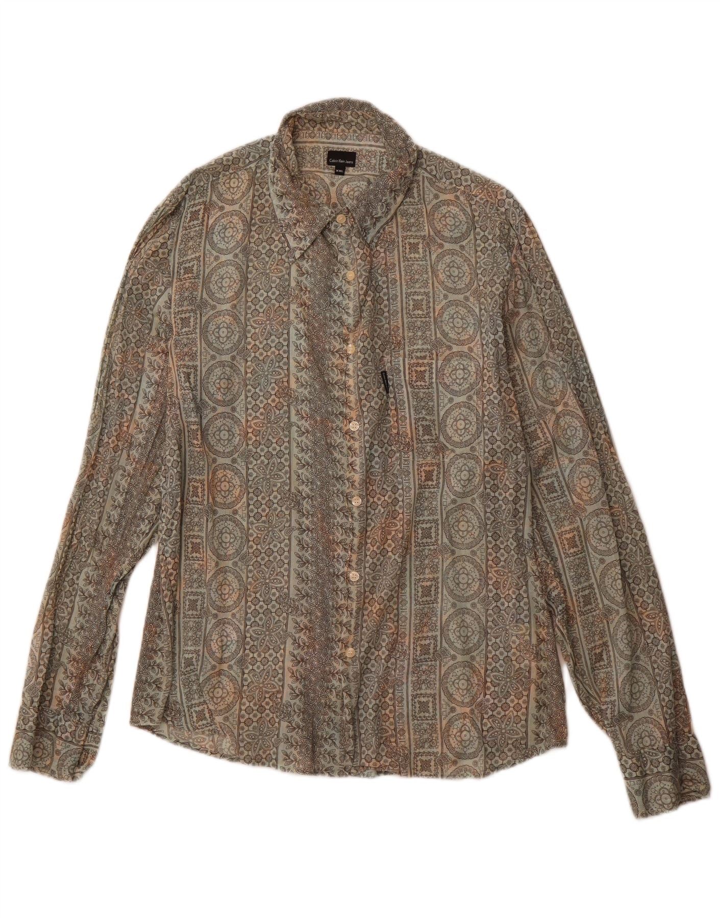 CALVIN KLEIN JEANS Dameskjorte UK 20 2XL Grå blomsterbomuld