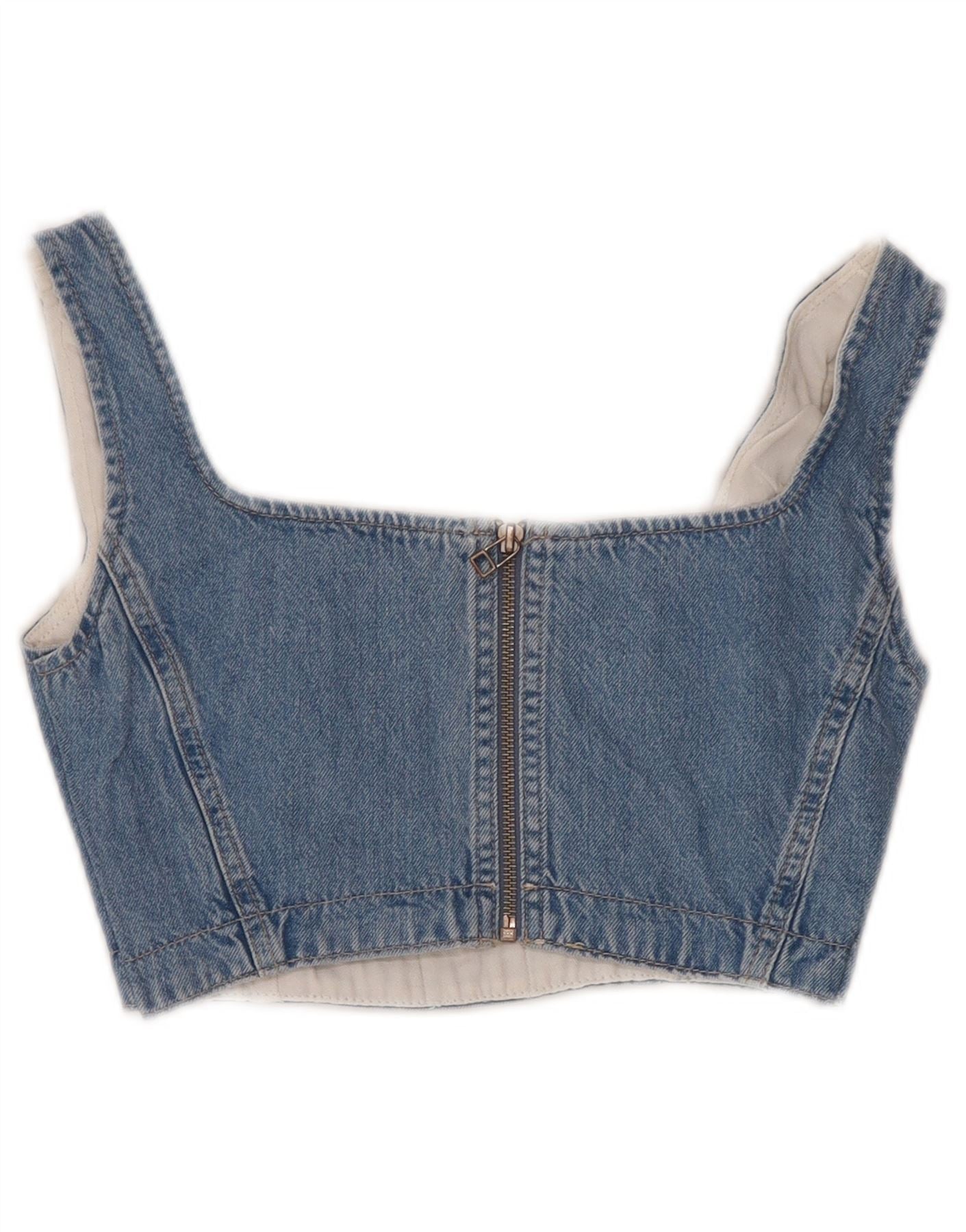 CALVIN KLEIN JEANS Dame ærmeløs denim Crop Top UK 6 XS Blå