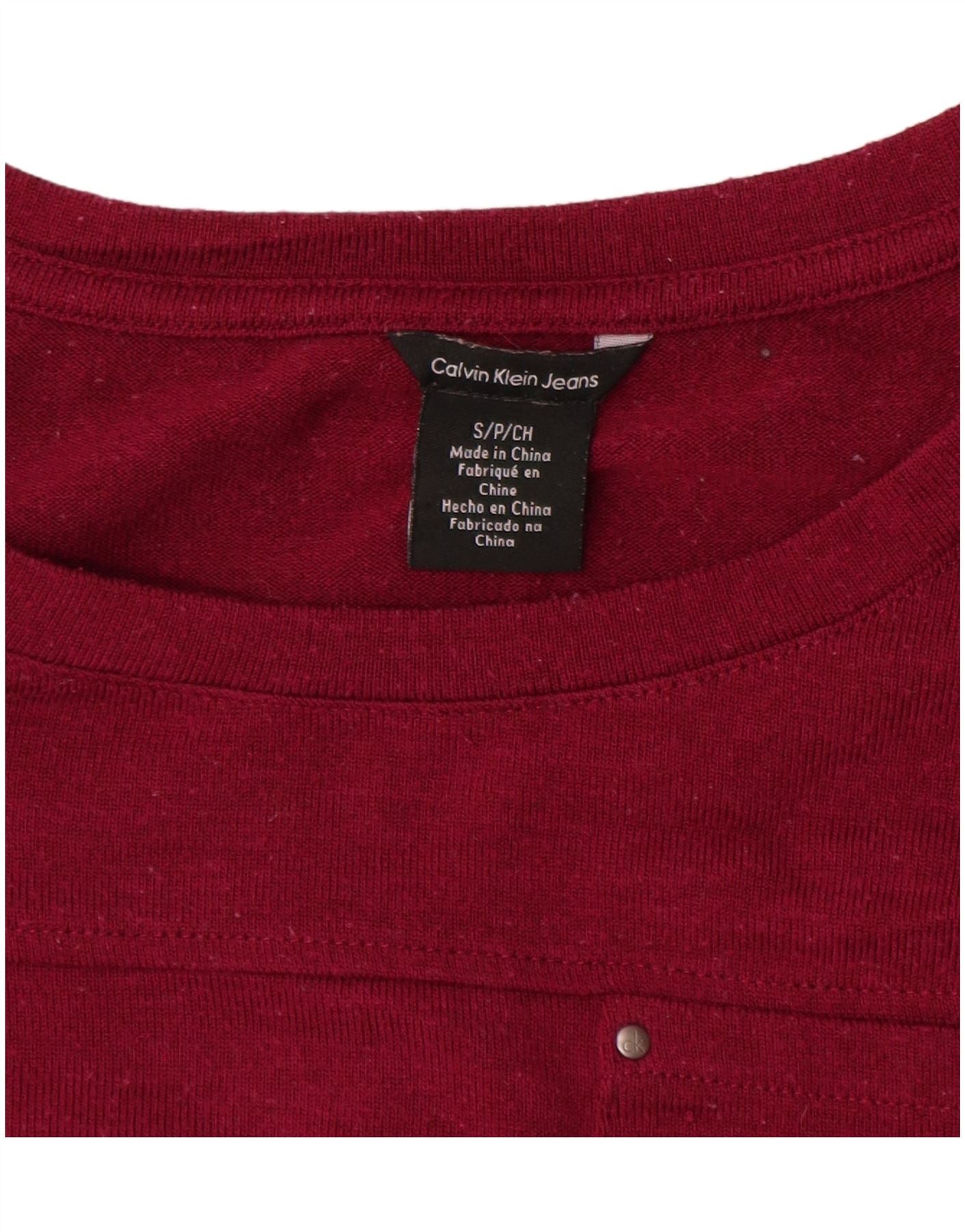 CALVIN KLEIN JEANS Dame Top 3/4 ærmer UK 10 Small Bourgogne Polyester