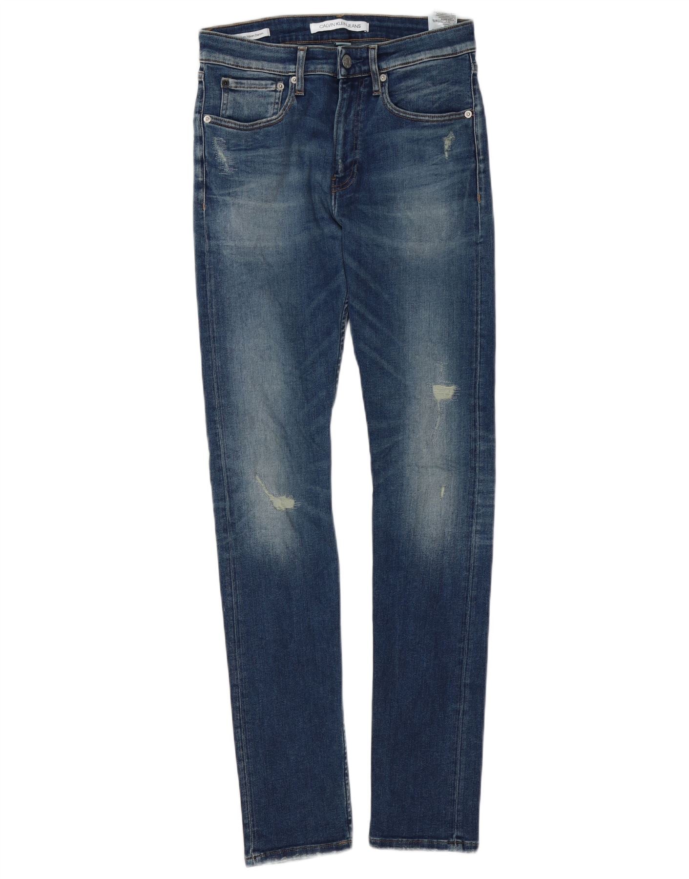 CALVIN KLEIN Distressed Skinny Jeans til mænd W28 L32 Blå Bomuld