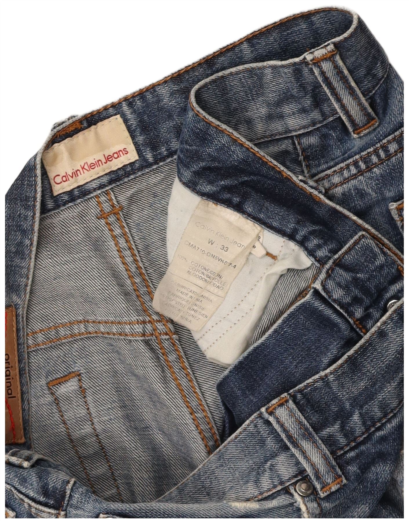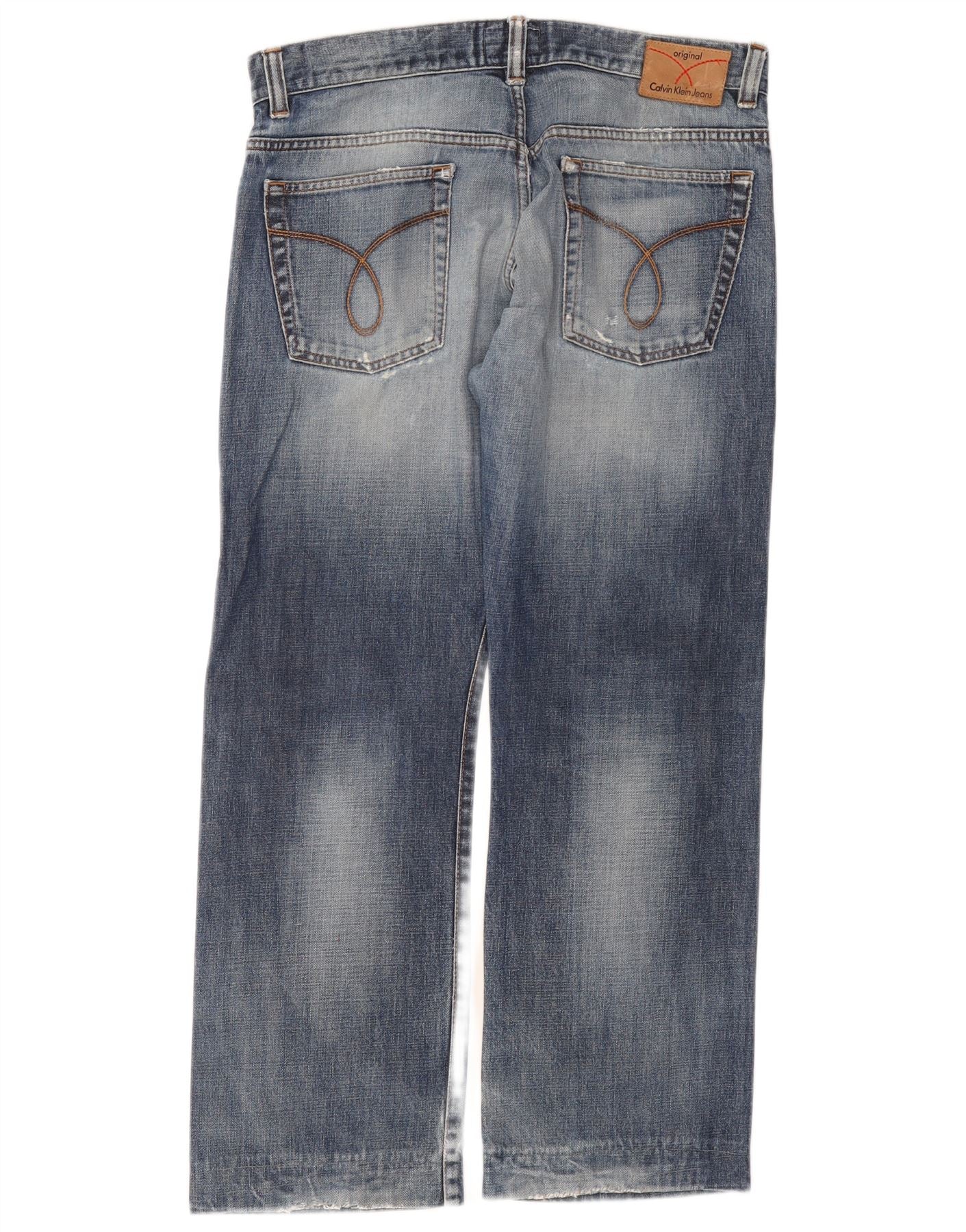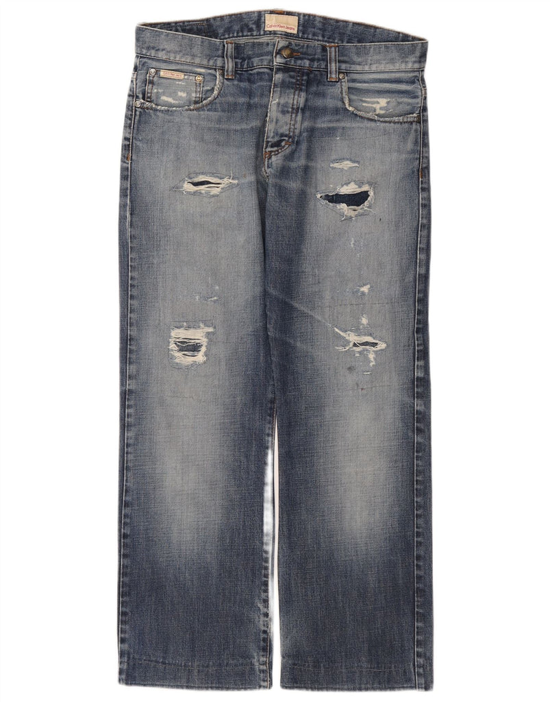 CALVIN KLEIN Mens Distressed Straight Jeans W33 L28 Blue Cotton