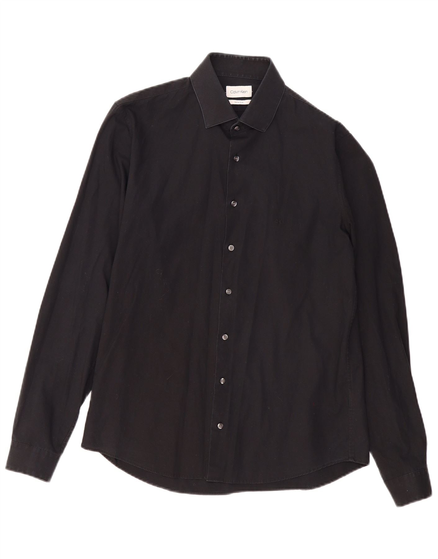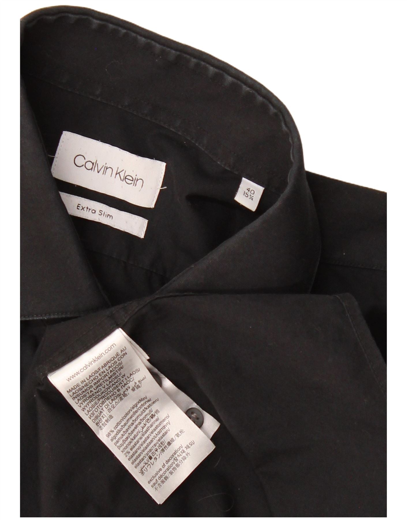 CALVIN KLEIN Herre Extra Slim Fit skjorte str. 40 15 3/4 Medium Sort Bomuld