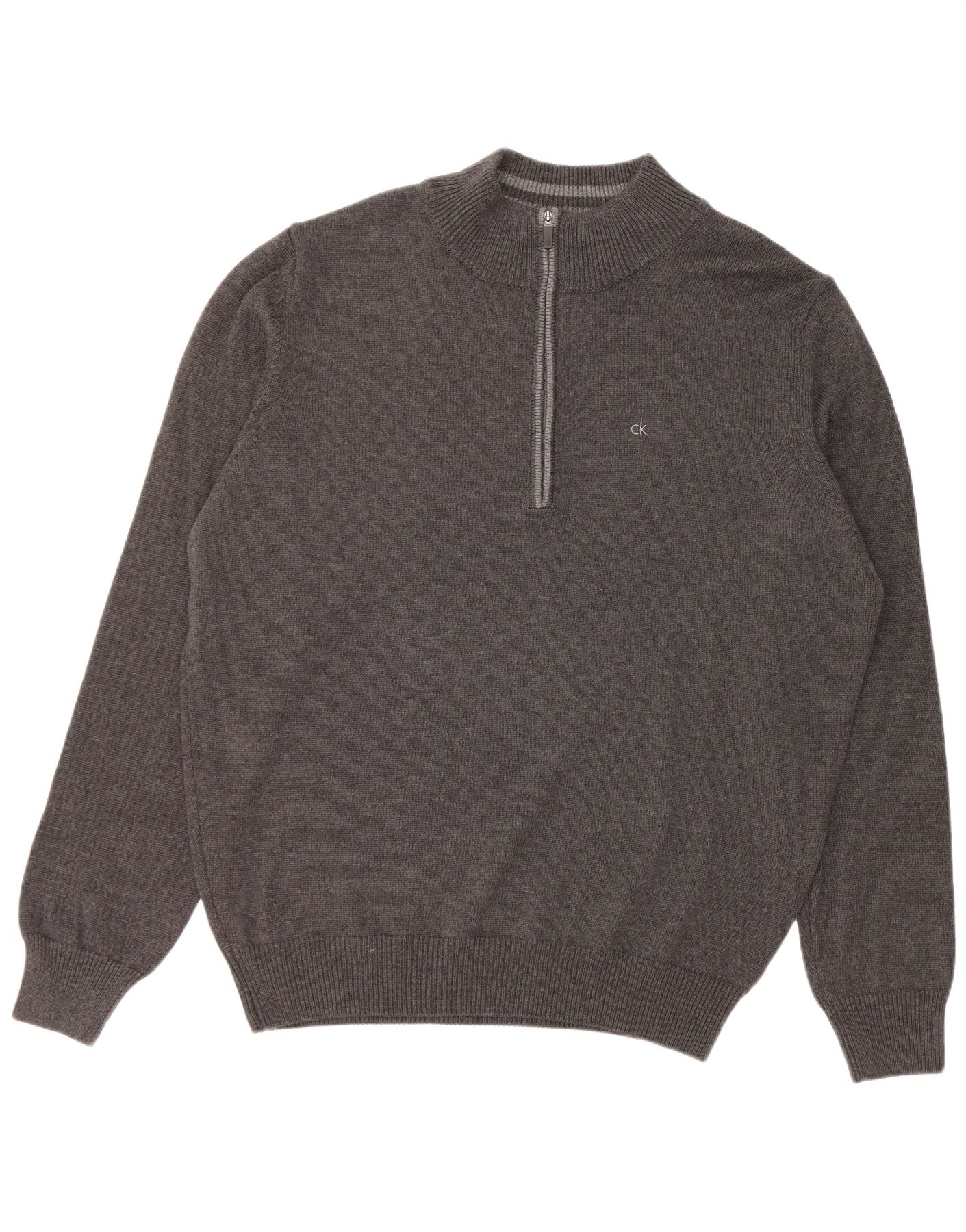 CALVIN KLEIN Herre Golf Zip Neck Jumper Sweater 2XL Grå Bomuld