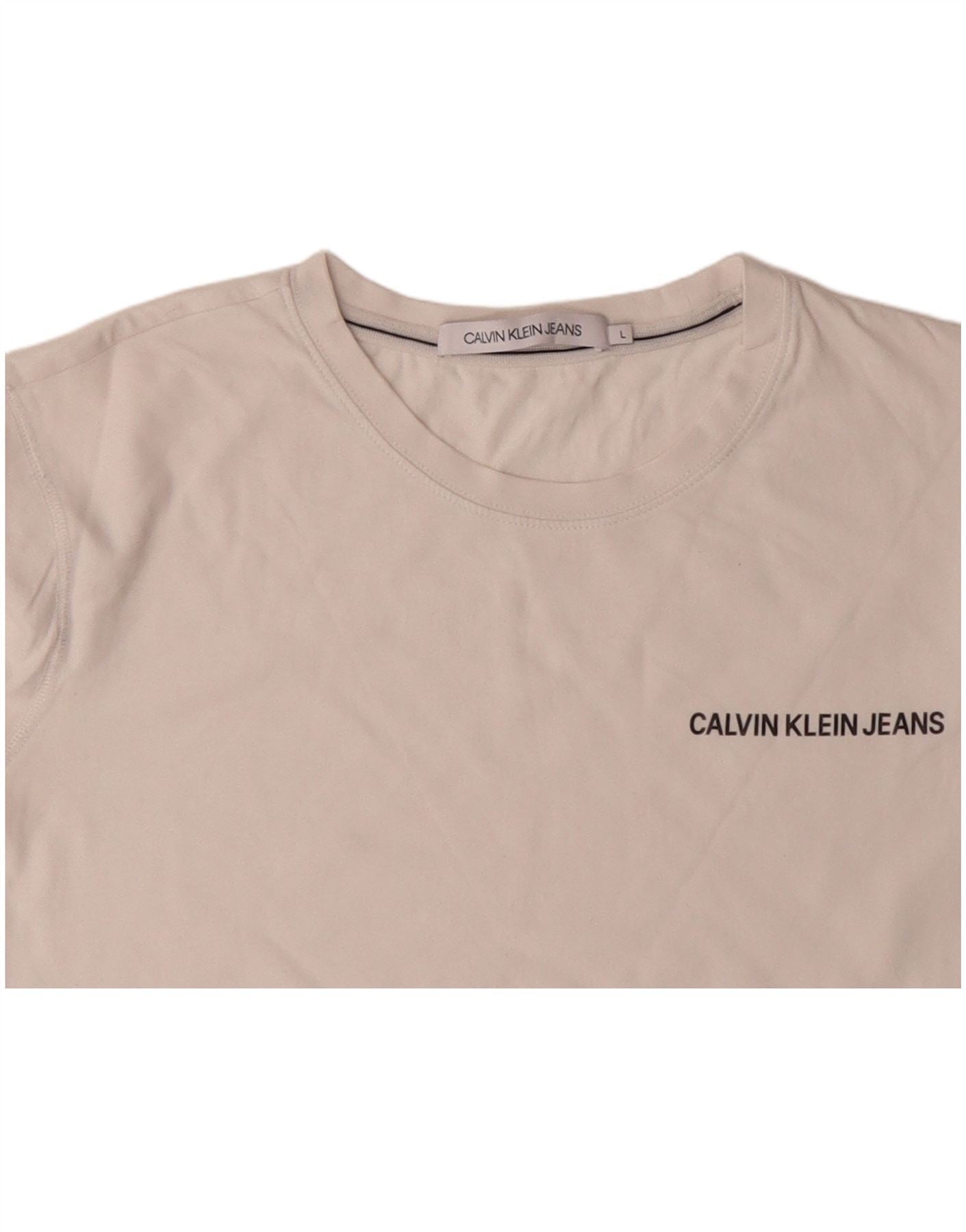 CALVIN KLEIN Herre Grafisk Top Langærmet UK 16 Large Off White Bomuld