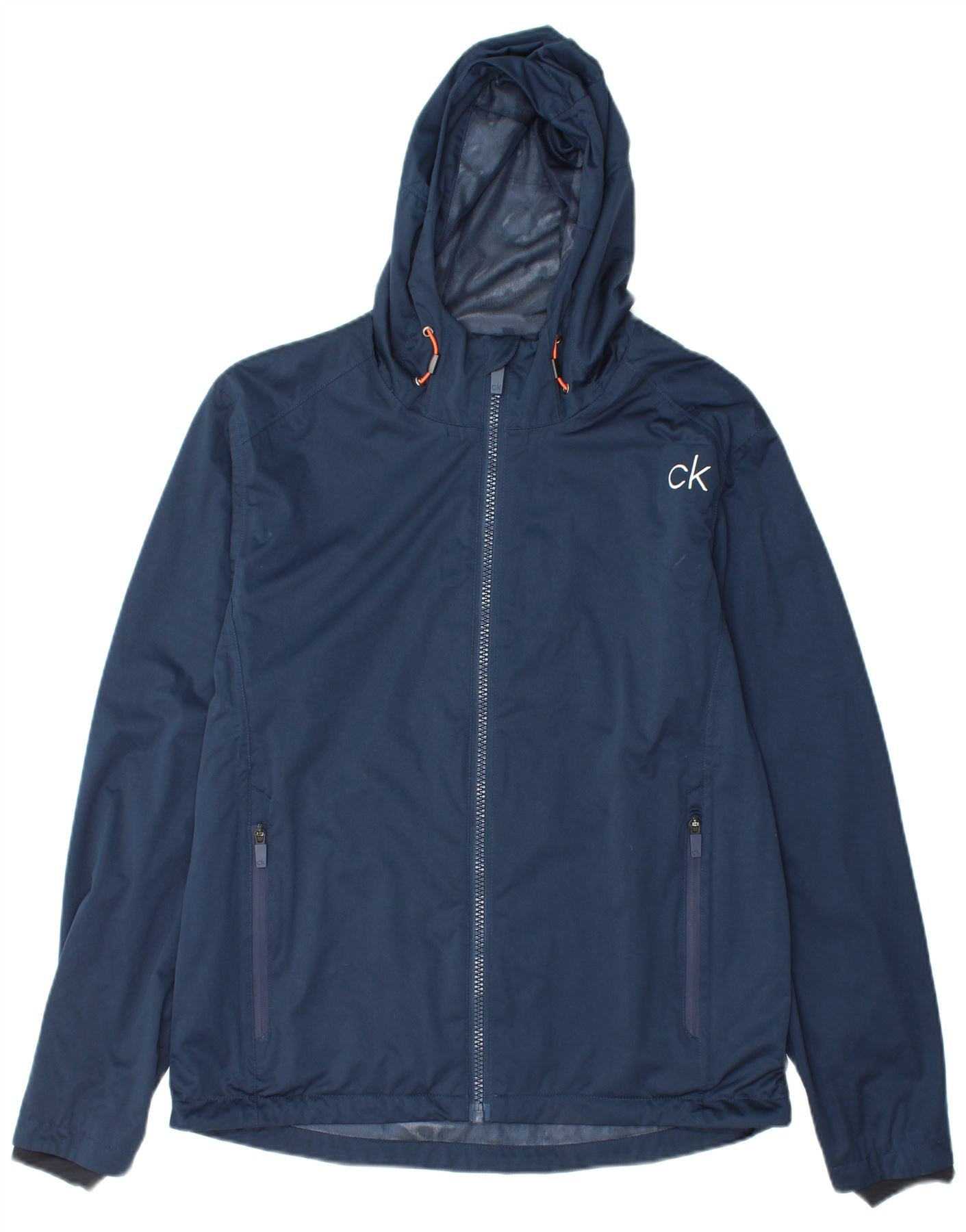 CALVIN KLEIN Mens Hooded Rain Jacket UK 38 Medium Navy Blue Polyester