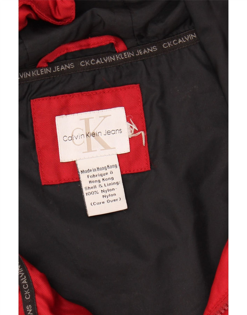 CALVIN KLEIN Mens Loose Fit Hooded Rain Jacket UK 44 2XL Burgundy Nylon