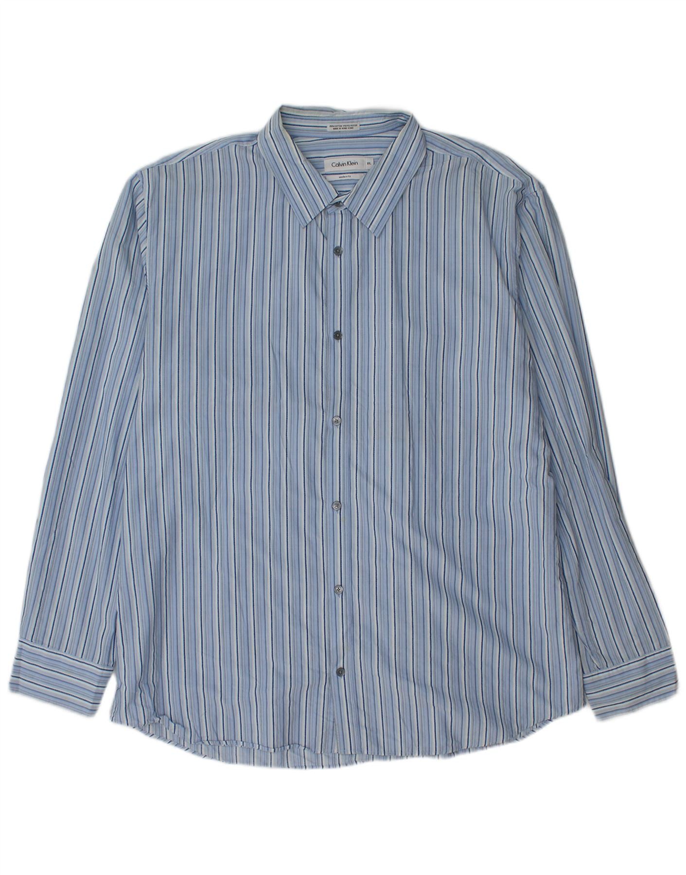 CALVIN KLEIN Herre Modern Fit skjorte 2XL blå stribet bomuld