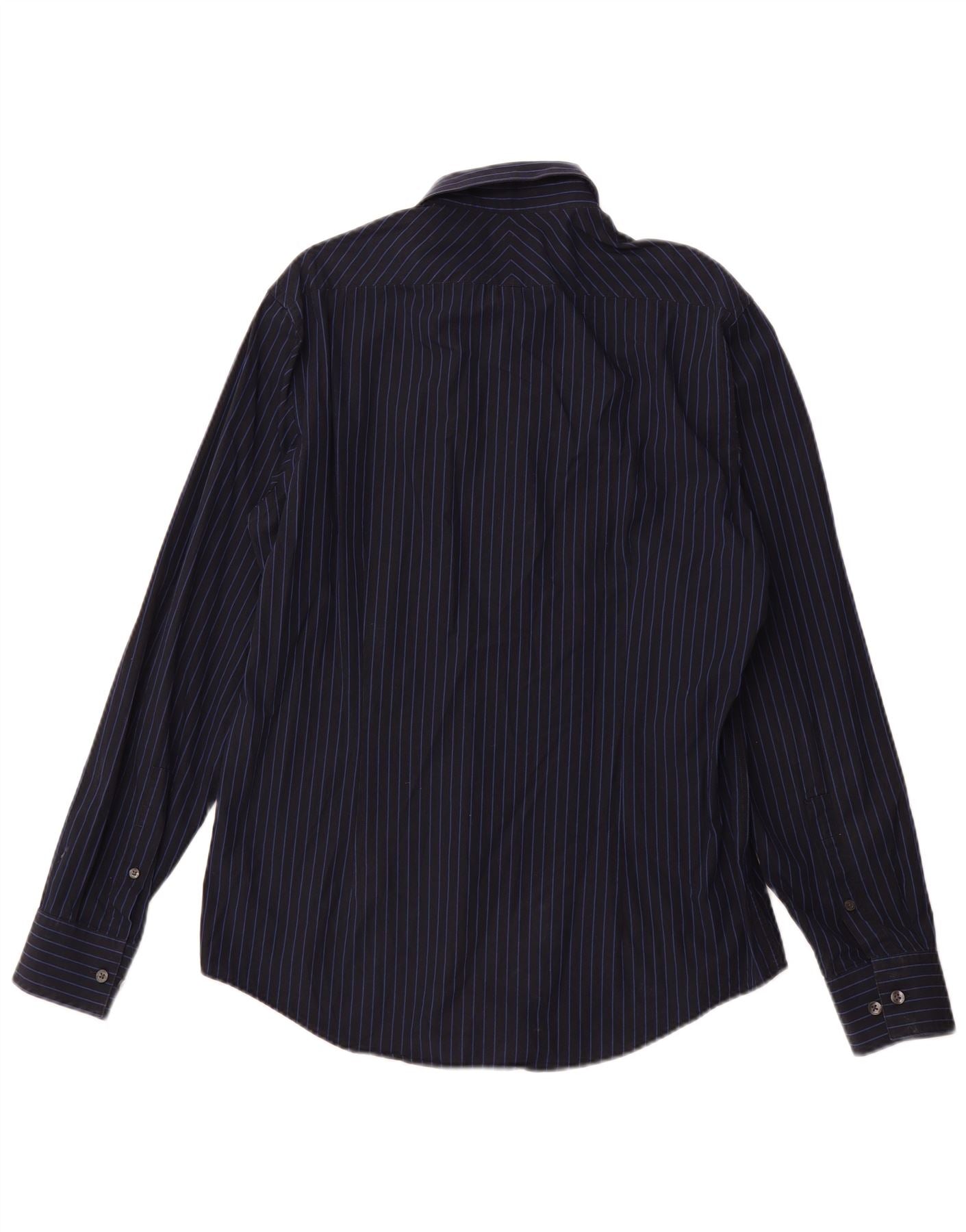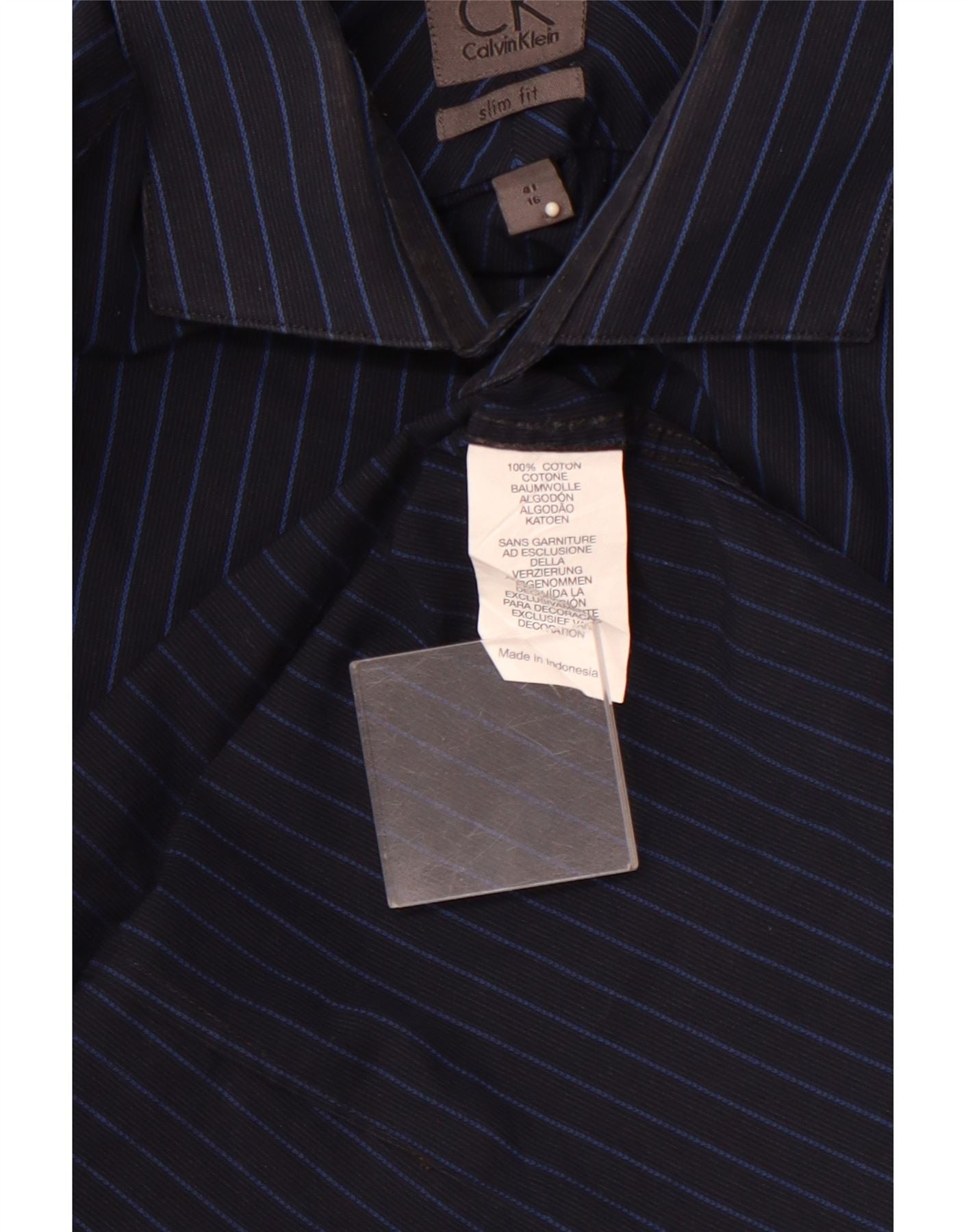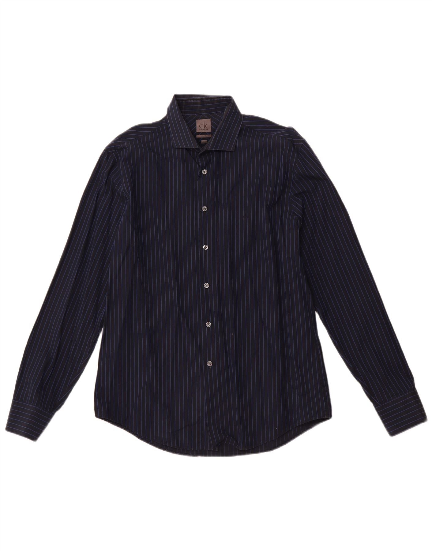 CALVIN KLEIN Herre Slim Fit skjorte str. 16 41 Stor marineblå stribet bomuld