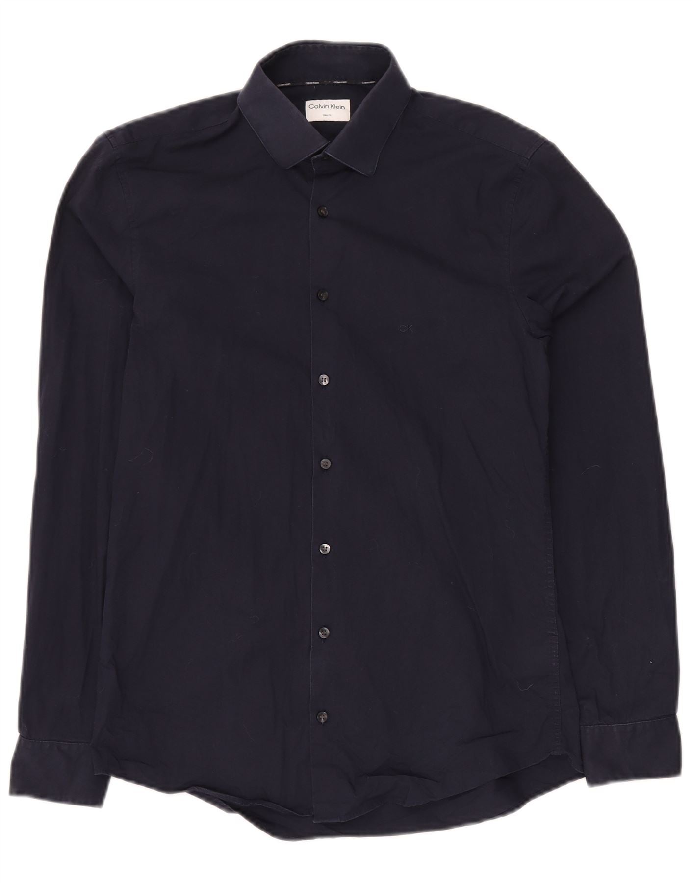 CALVIN KLEIN Herre Slim Fit skjorte str. 39 Medium Navyblå Bomuld