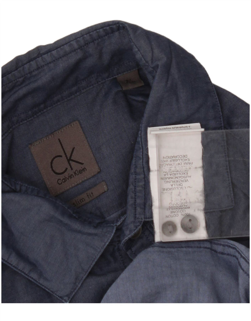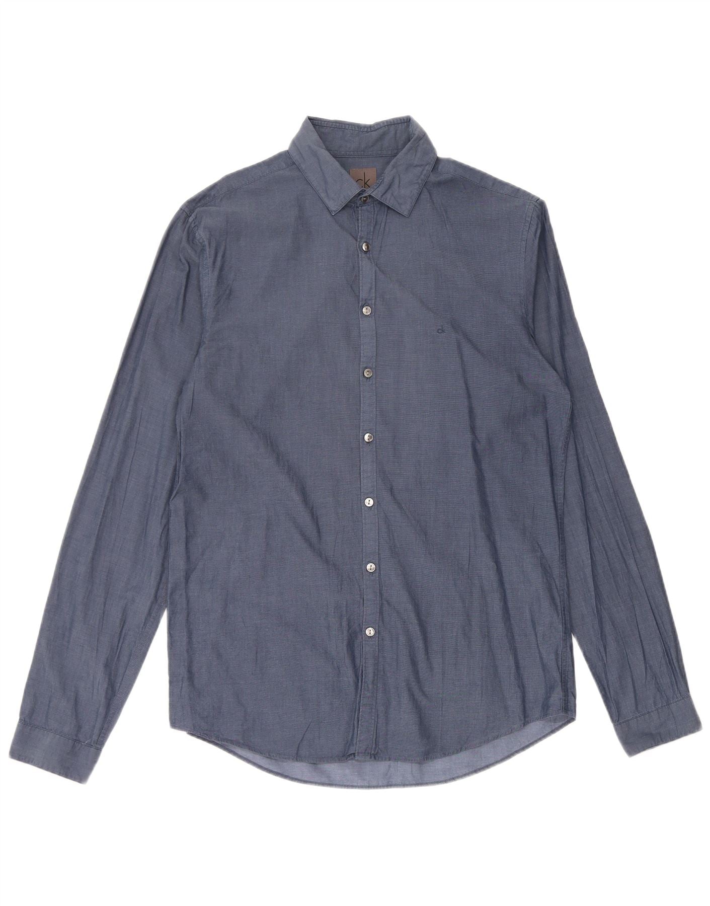 CALVIN KLEIN Herre Slim Fit Skjorte Størrelse 40 Medium Marineblå Bomuld