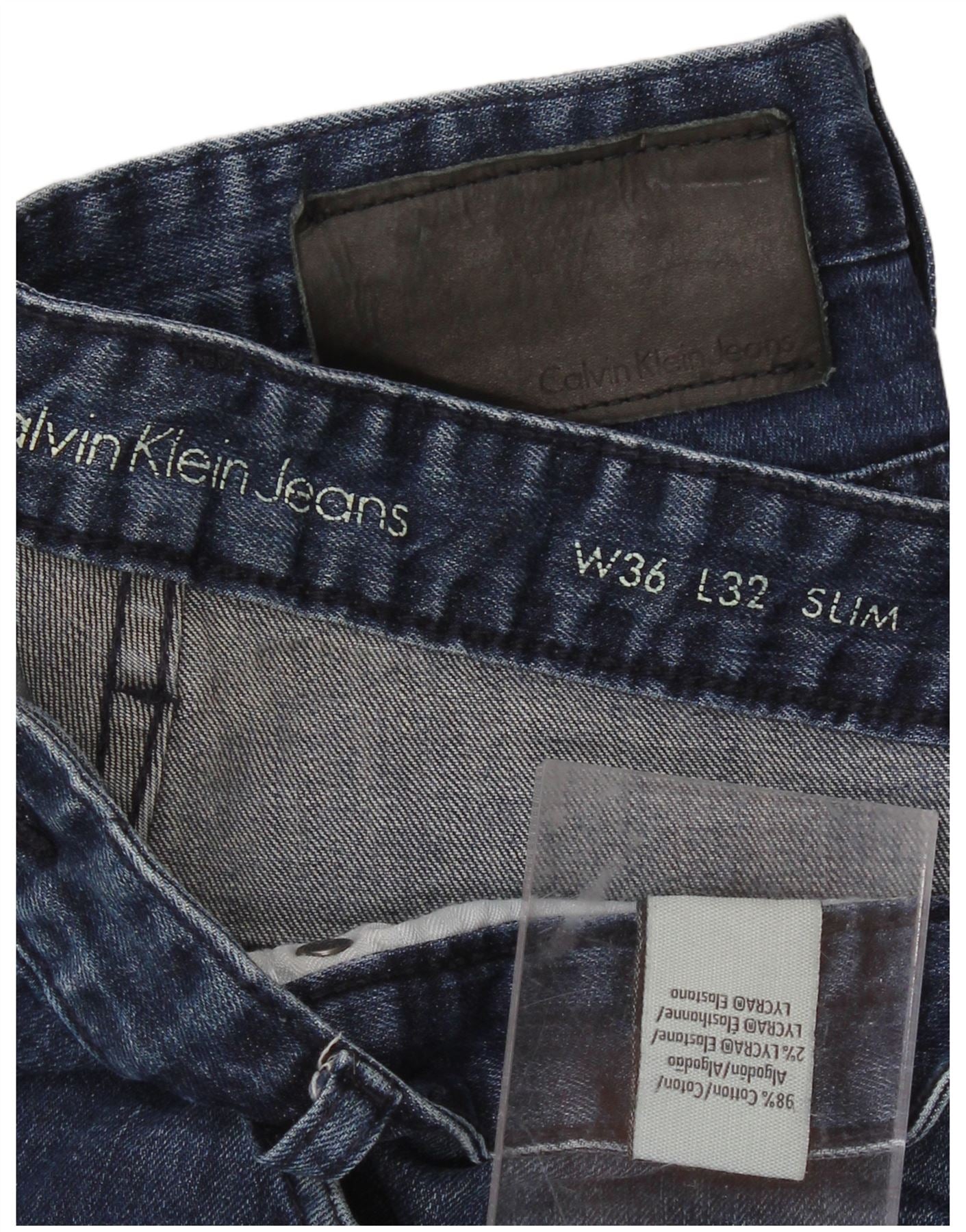 - AI Description: These Calvin Klein womens slim jeans are crafted from blue stretch denim. They feature a mid rise waist and a zip fly closure. The slim fit design tapers neatly through the leg. Classic five pocket styling adds practicality. A subtle logo detail completes the look. This pair offers both comfort and a sleek, modern silhouette.