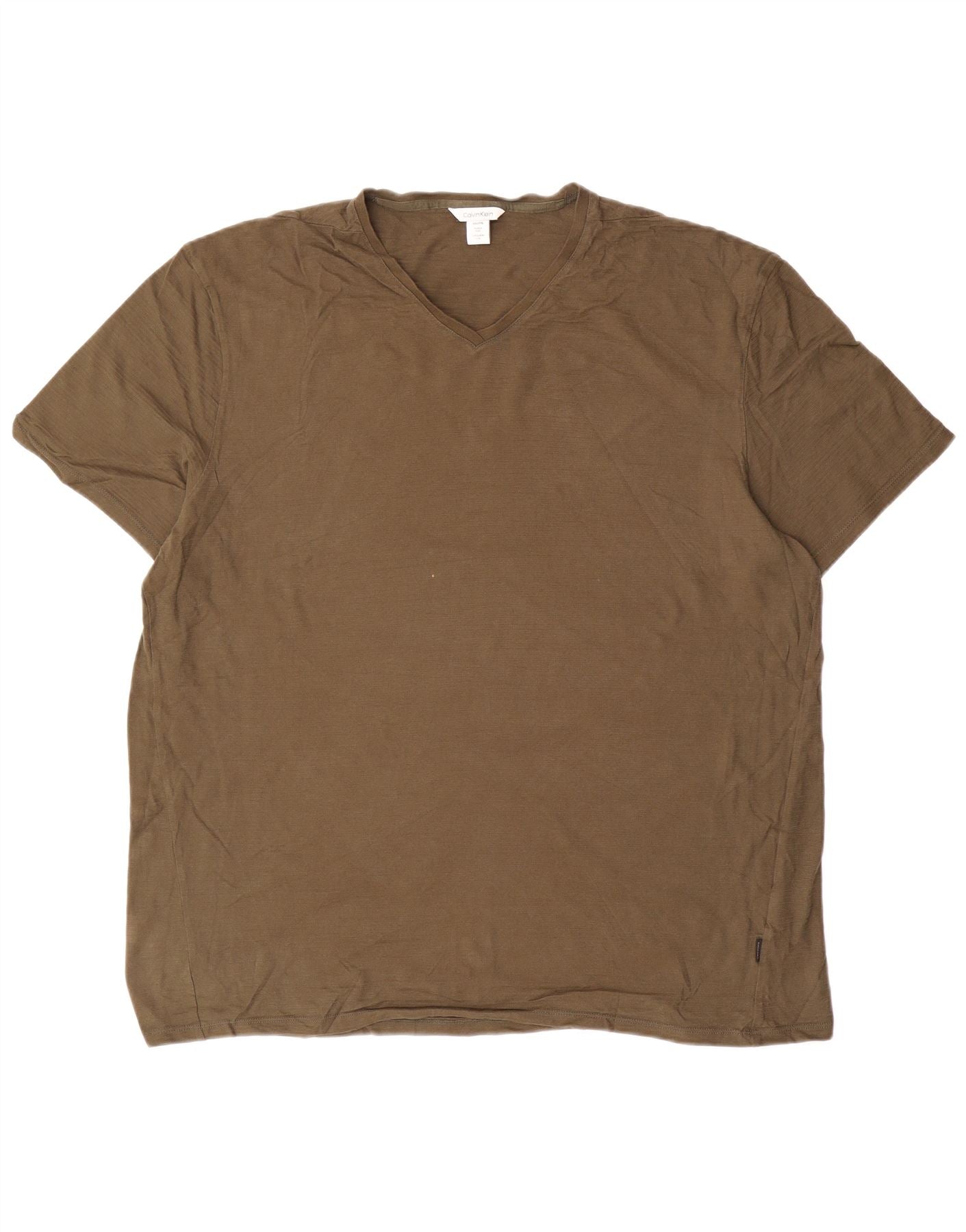 CALVIN KLEIN Herre T-Shirt Top 2XL Khaki Bomuld