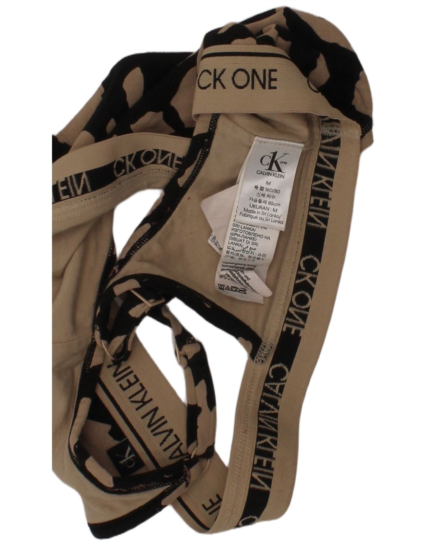 - AI Description: This Calvin Klein womens crop top is crafted from a comfortable beige cotton blend knit. It features a subtle animal print pattern throughout. The iconic Calvin Klein logo adds a signature touch. The sleeveless design and round neck offer a classic silhouette. Its slim fit and stretch fabric ensure comfort and a flattering shape. Adjustable elements provide a personalised feel. This versatile piece is perfect for layering or wearing on its own.