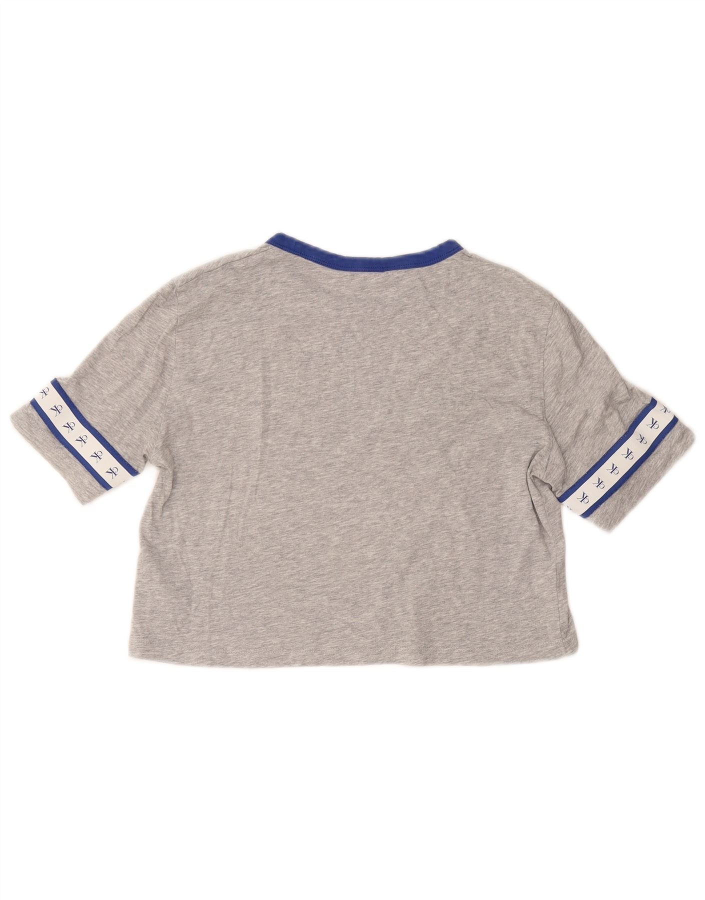CALVIN KLEIN Dame Crop Grafisk T-Shirt Top UK 6 XS Grå Bomuld