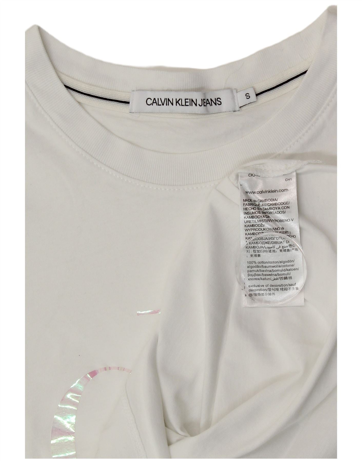 Calvin Klein Dame Crop Grafisk T-Shirt Top UK 8 Small Off White Logo