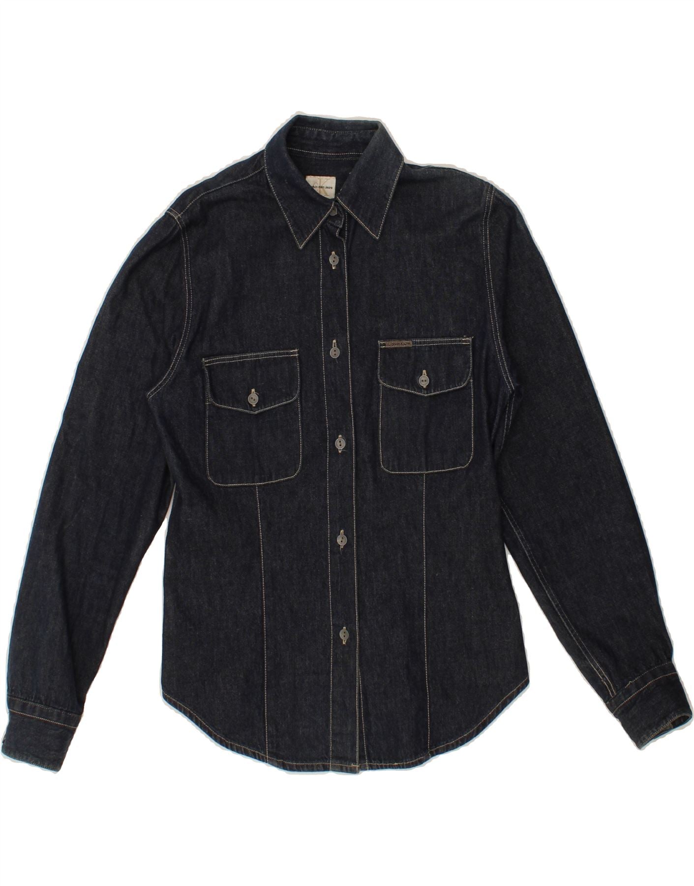 CALVIN KLEIN Womens Denim Shirt UK 10 Small Navy Blue Cotton