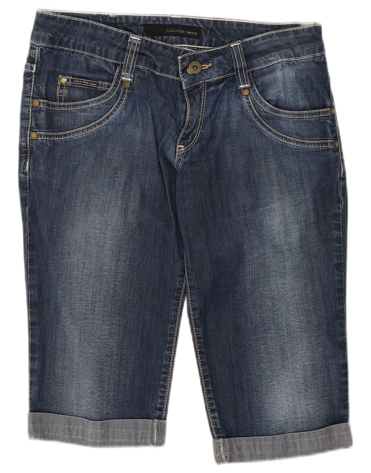 CALVIN KLEIN denimshorts til kvinder W28 Mellem marineblå bomuld