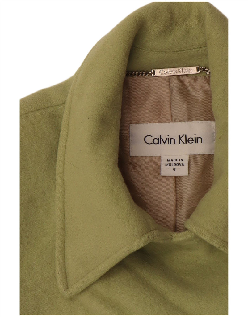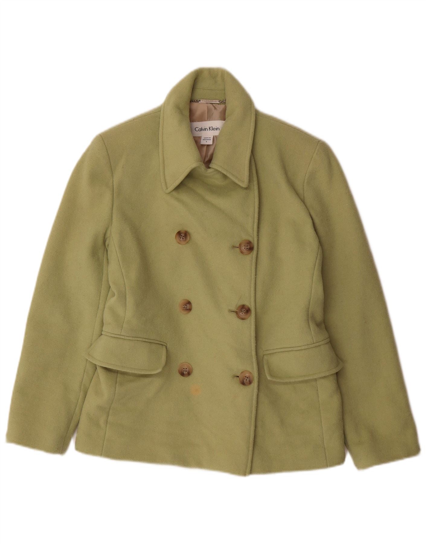CALVIN KLEIN Womens Double Breasted Blazer Jacket Size 6 Medium Green Wool