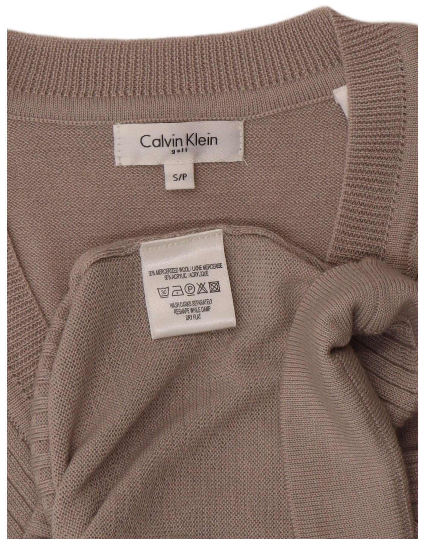CALVIN KLEIN Dame Golf V-hals sweater UK 10 Small Beige Uld