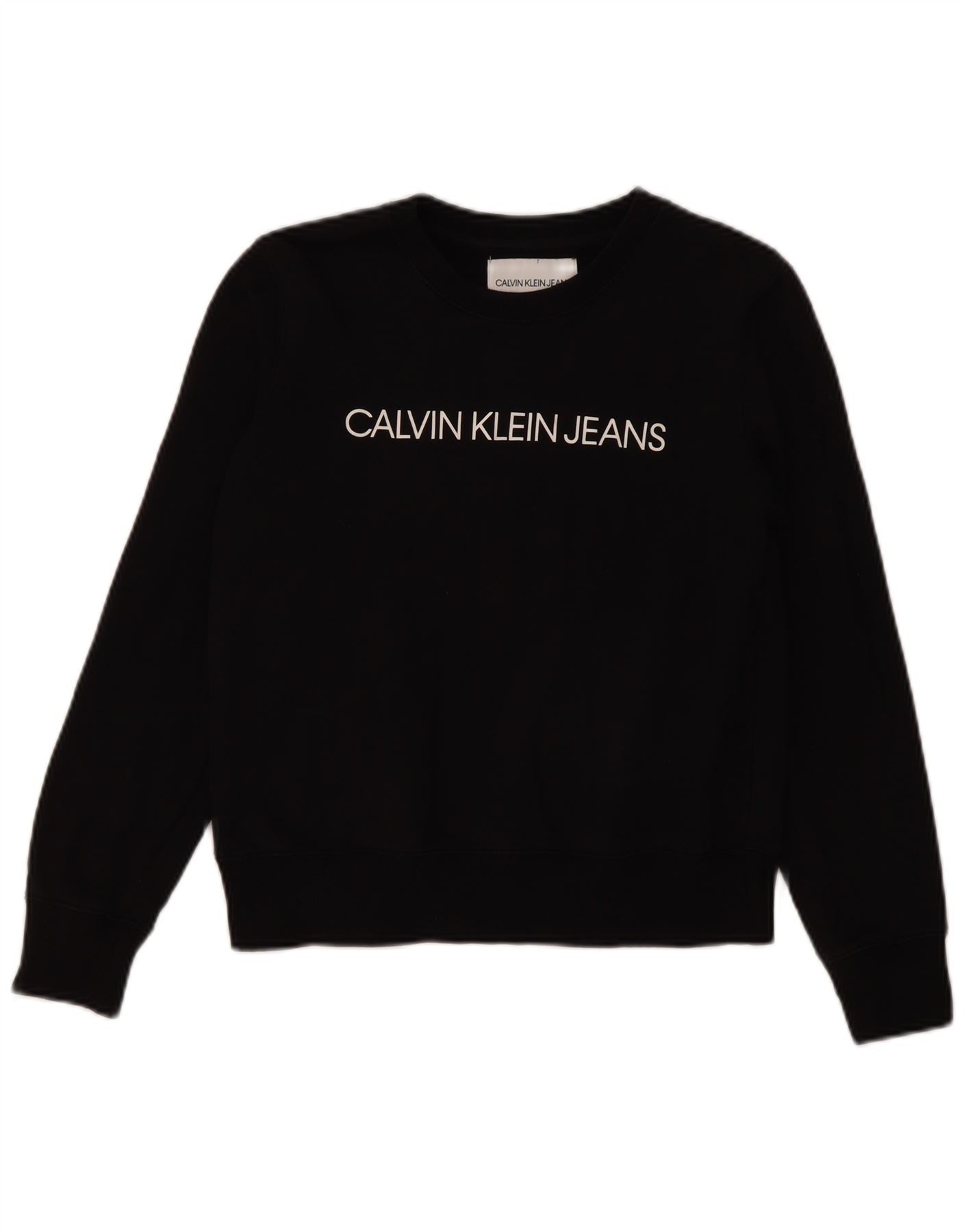 Calvin Klein Dame Grafisk Sweatshirt Jumper UK 10 Small Black Bomuld
