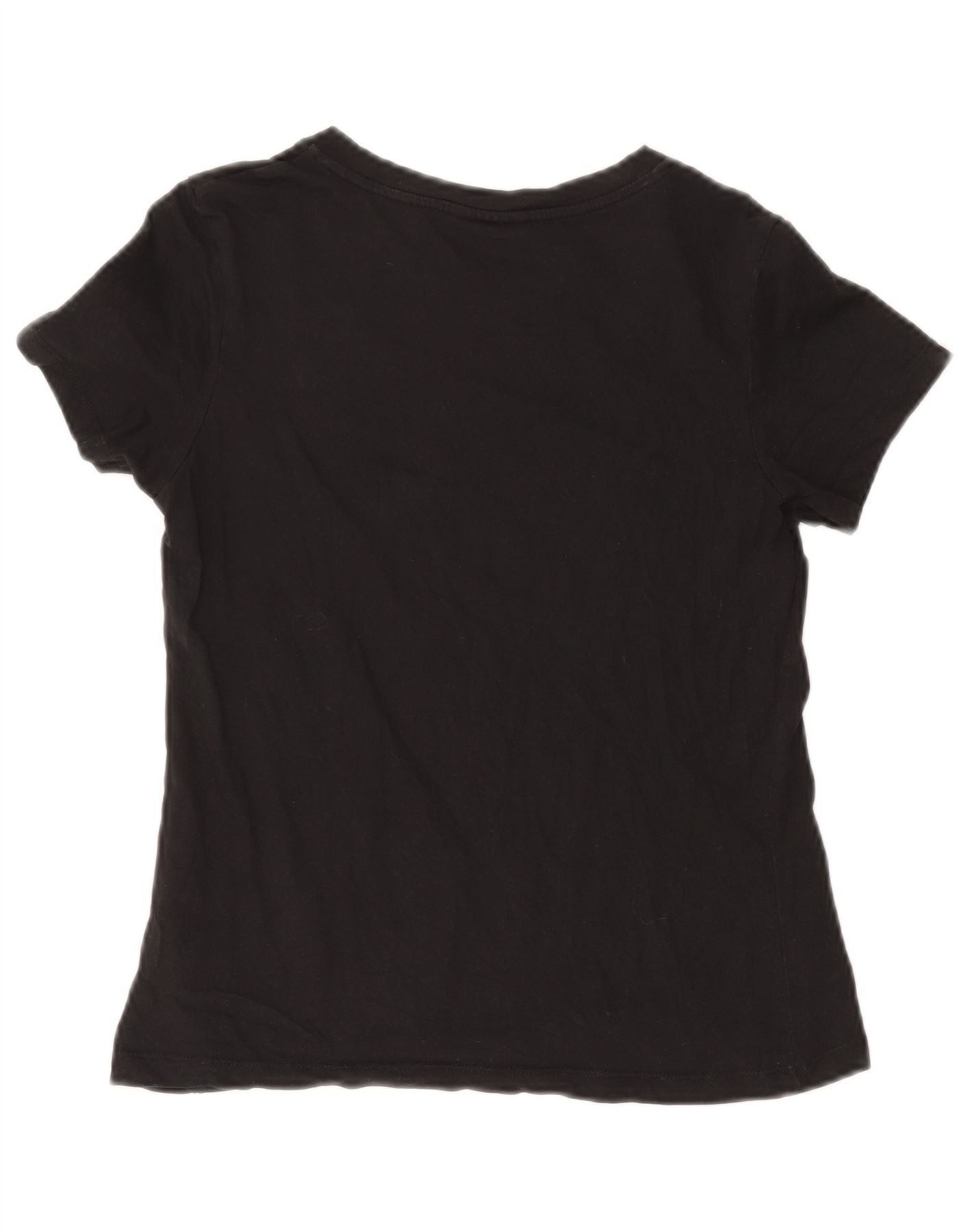 CALVIN KLEIN Dame Grafisk T-Shirt Top UK 12 Medium Sort Bomuld