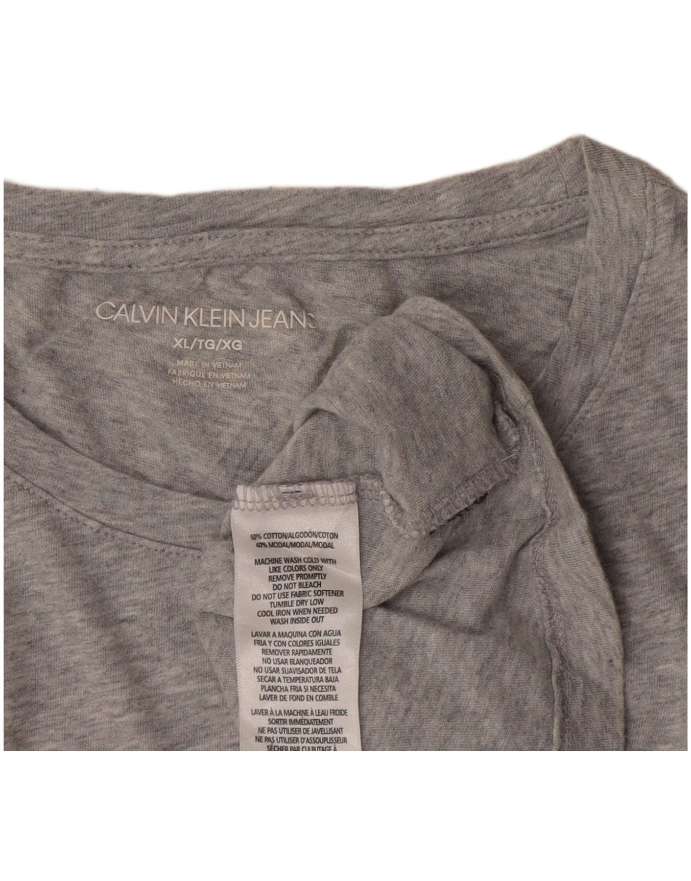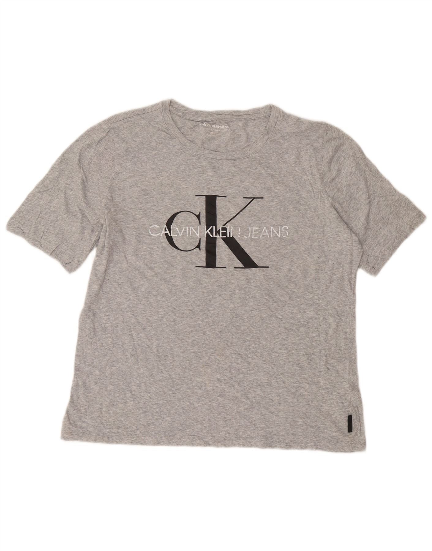 Calvin Klein Dame Grafisk T-Shirt Top UK 18 XL Grå Bomuld