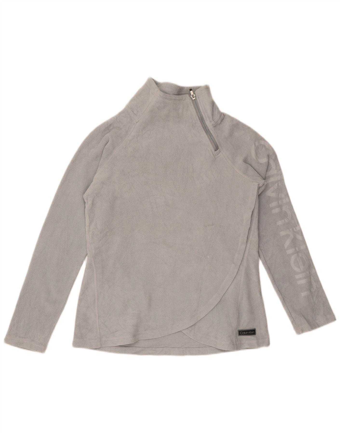 Calvin Klein Dame Grafisk Zip Neck Fleece Jumper UK 10 Small Grey