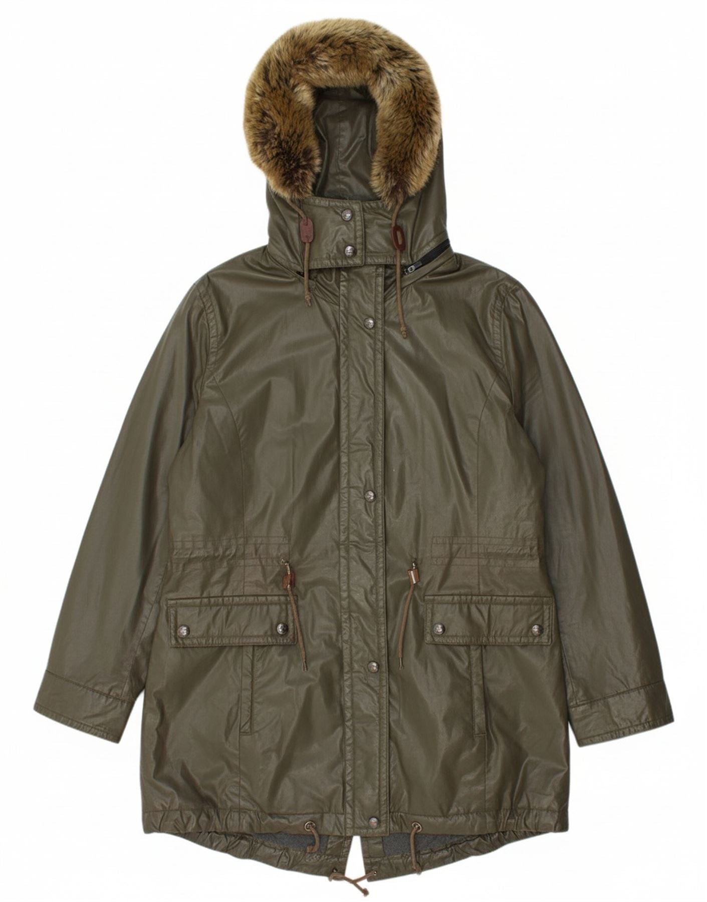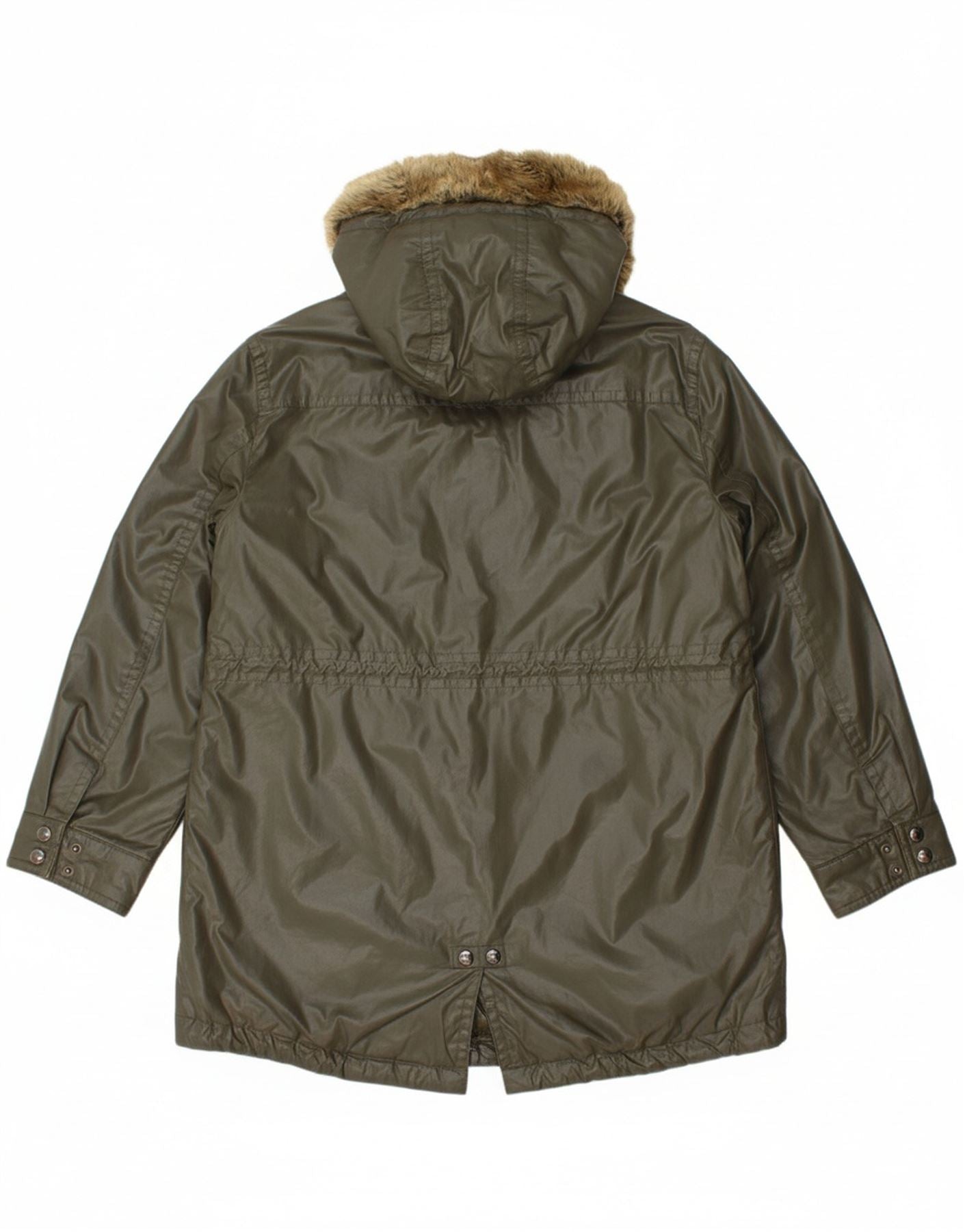 CALVIN KLEIN Womens Hooded Parka Jacket UK 16 Large Khaki Cotton