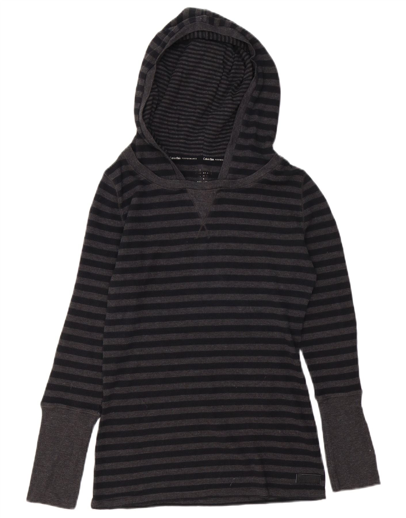 Calvin Klein Dame hættetrøje Langærmet UK 12 Mellem grå stribet bomuld