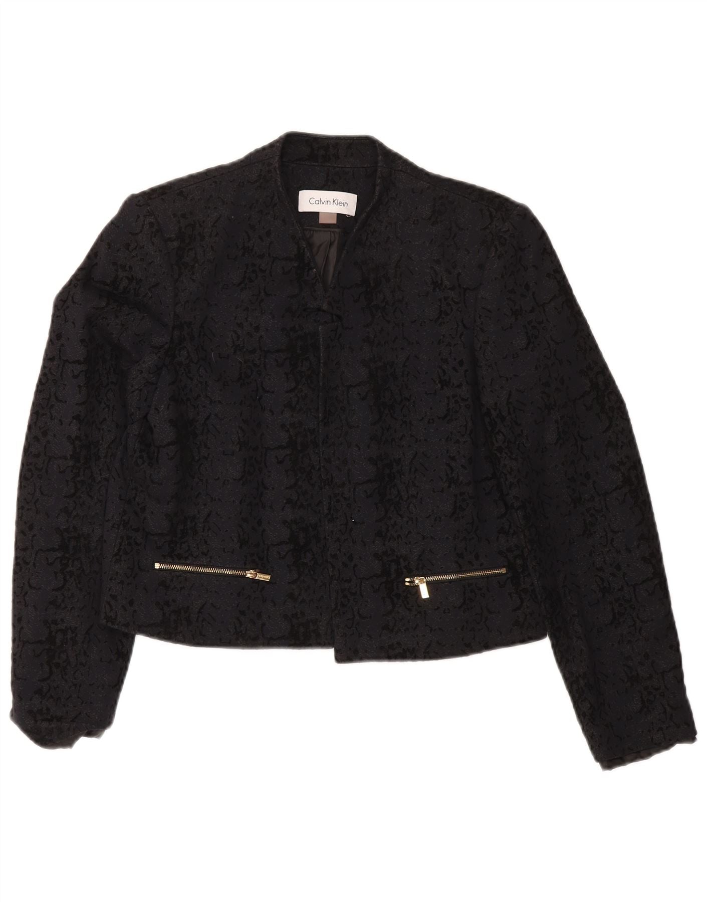 CALVIN KLEIN Womens Open Abstract Pattern Bolero Jacket UK 14 Medium Black