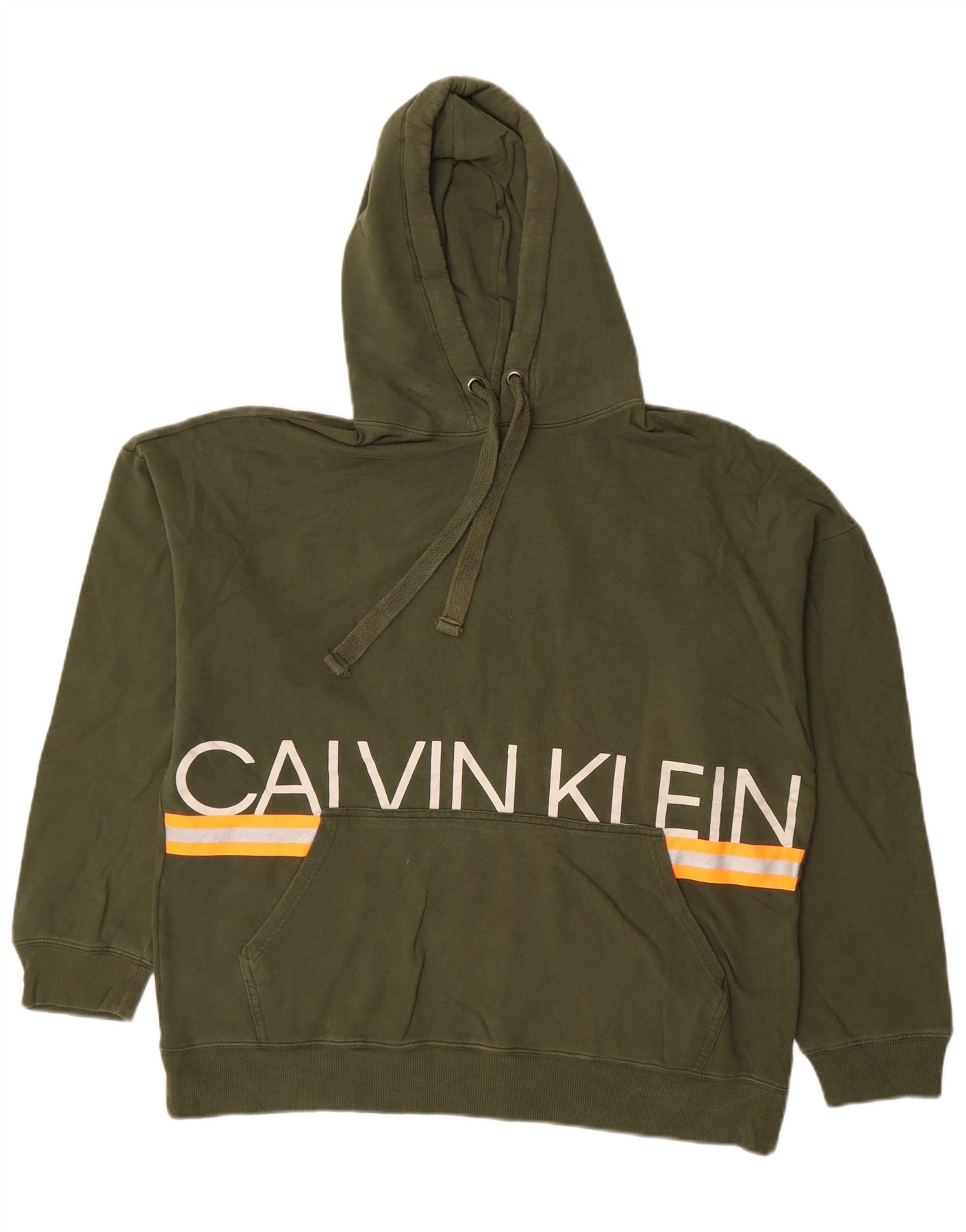 CALVIN KLEIN Dame Oversized grafisk hættetrøje trøje UK 16 Large Khaki